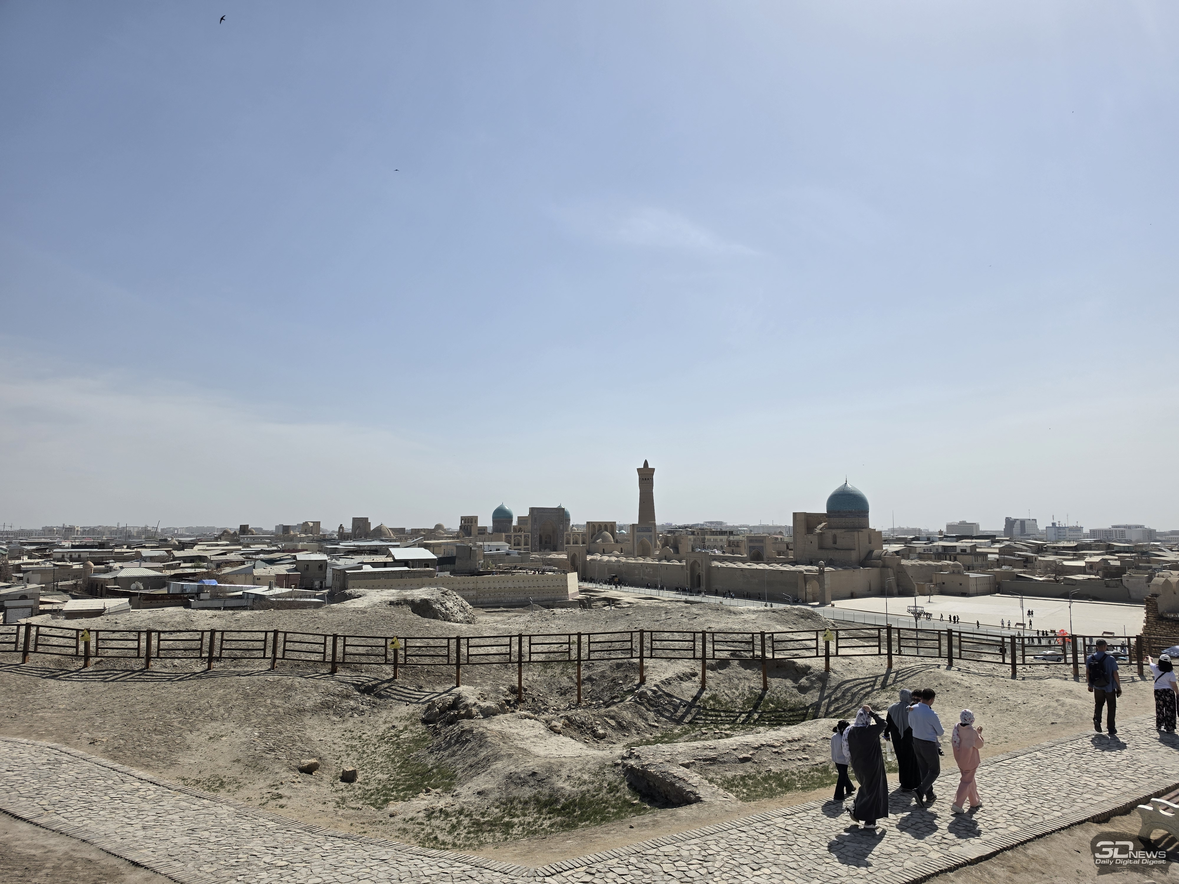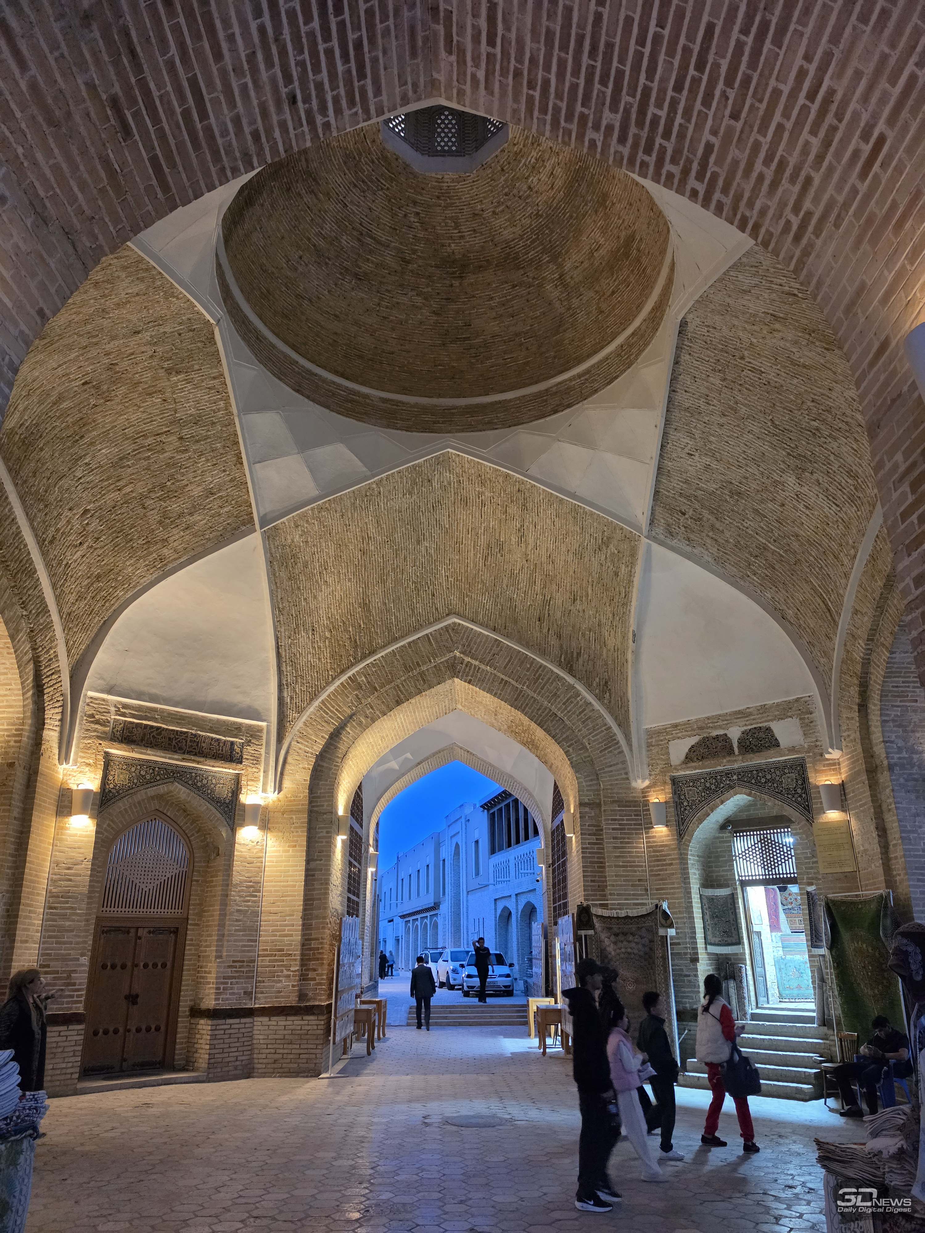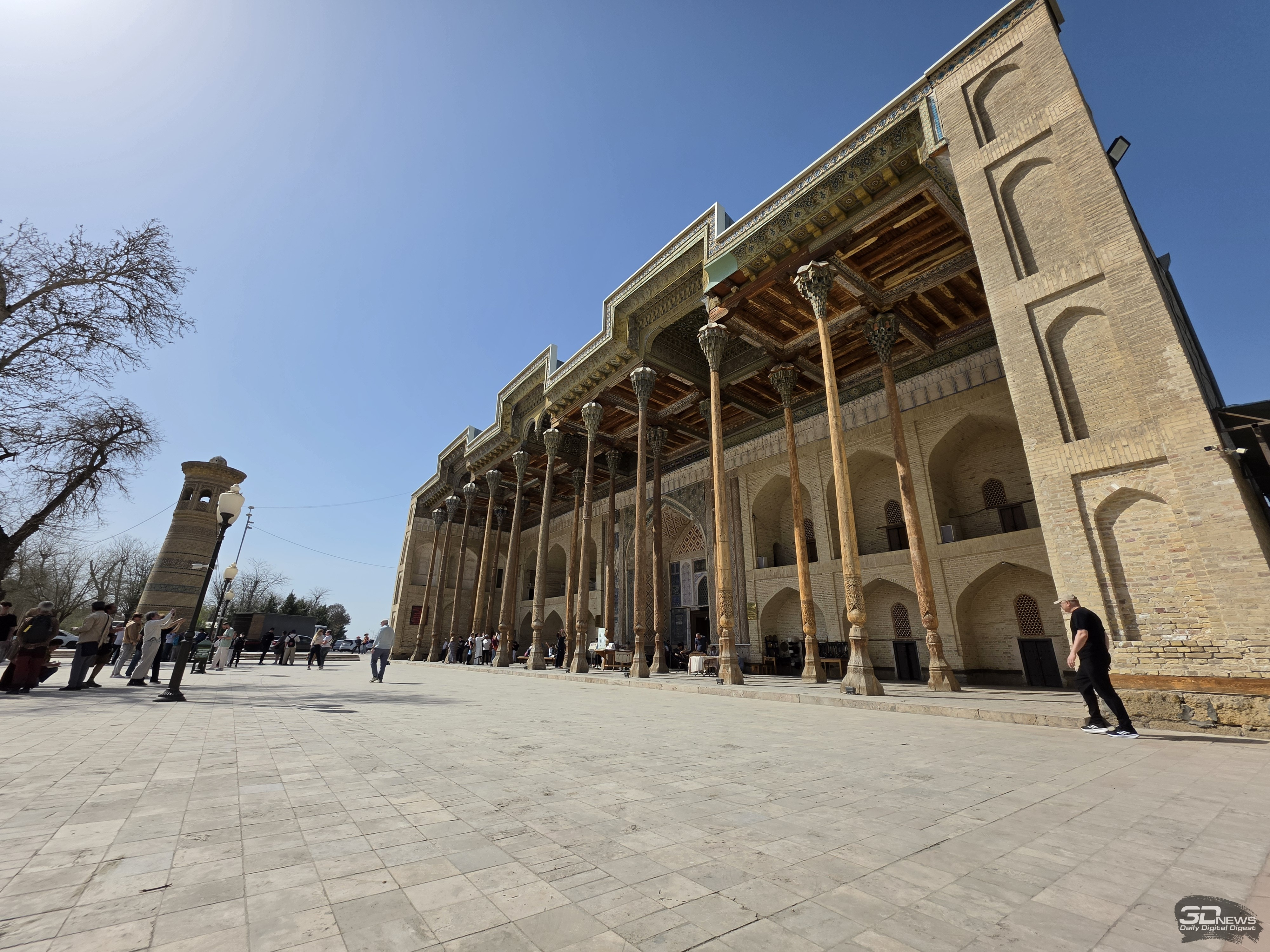 Самый традиционный сюжет в любом путешествии — общие планы. Широкоугольная камера на Samsung Galaxy S26 Ultra обладает автофокусом, так что снимать на нее можно что-то акцентное на переднем плане, но в данном случае — чистая классика: площадь Регистан в Самарканде, гробница Тимура (более известного в России как Тамерлан), мечеть Боло-Хауз или пруд Ля-Хауз в Бухаре — очень широкий угол обзора позволяет передать масштаб древних сооружений, охватить весь ансамбль одним кадром.