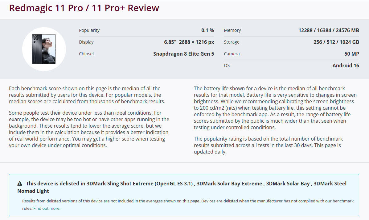 Самые быстрые игровые смартфоны RedMagic 11 Pro и Pro Plus исключили из рейтингов 3DMark за читерство