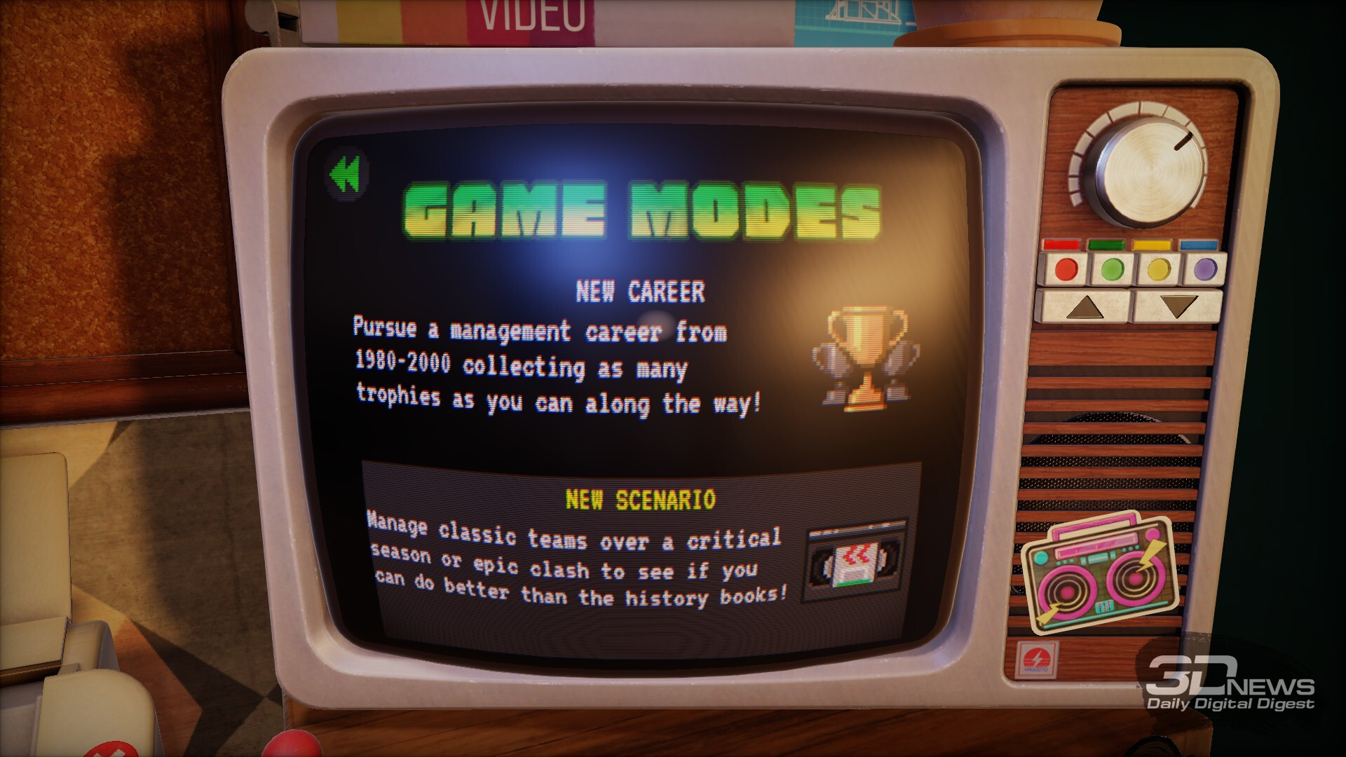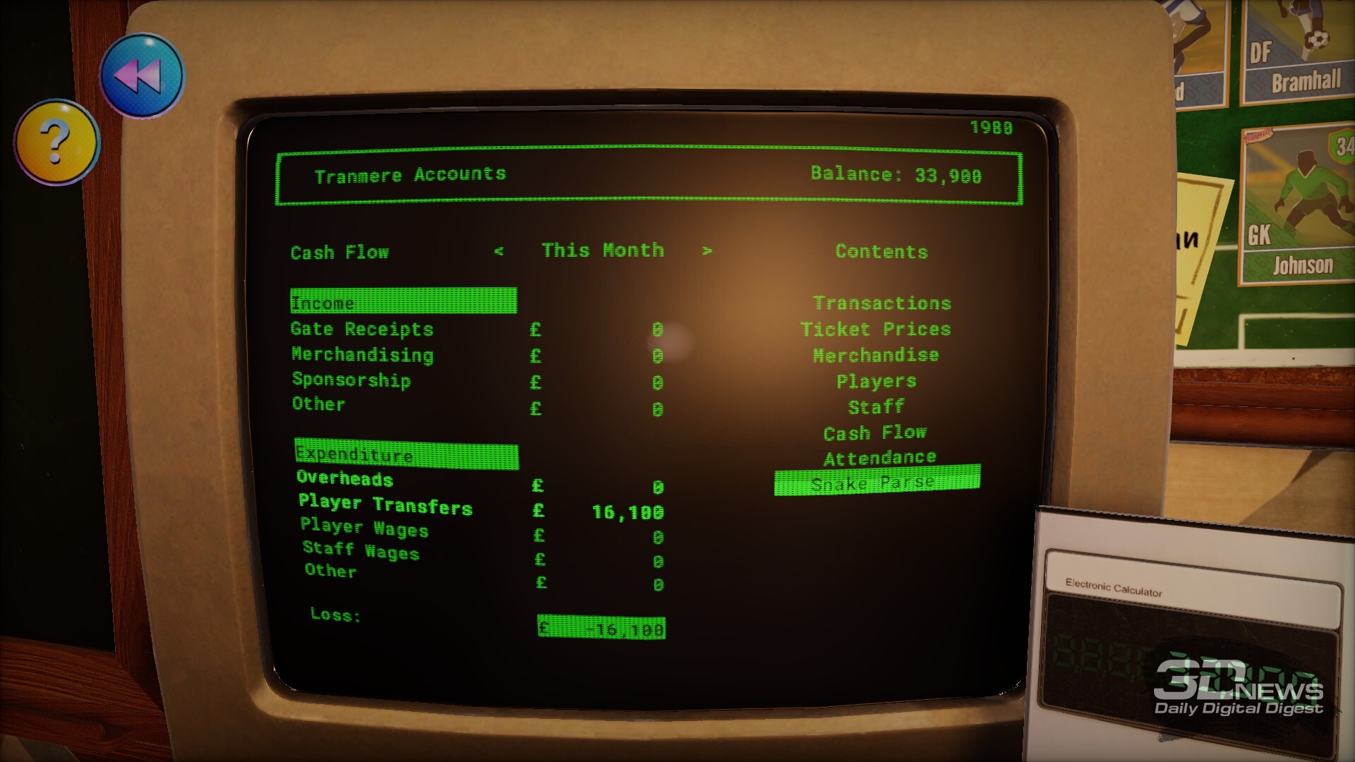 Но игровой процесс в любом случае незамысловатый и не имеет двойного дна. С годами (обычная карьера длится 20 сезонов — с 1980-го по 2000-й) количество замен увеличивается с одной до трёх, дисковый телефон сменяется на столе кнопочным, в числе доступных для покупки футболистов появляется все больше знакомых мне, выросшему в 90-е, фамилий, но игровые механики не меняются от начала и до конца.