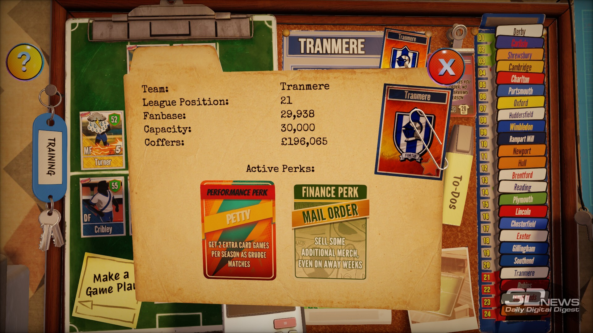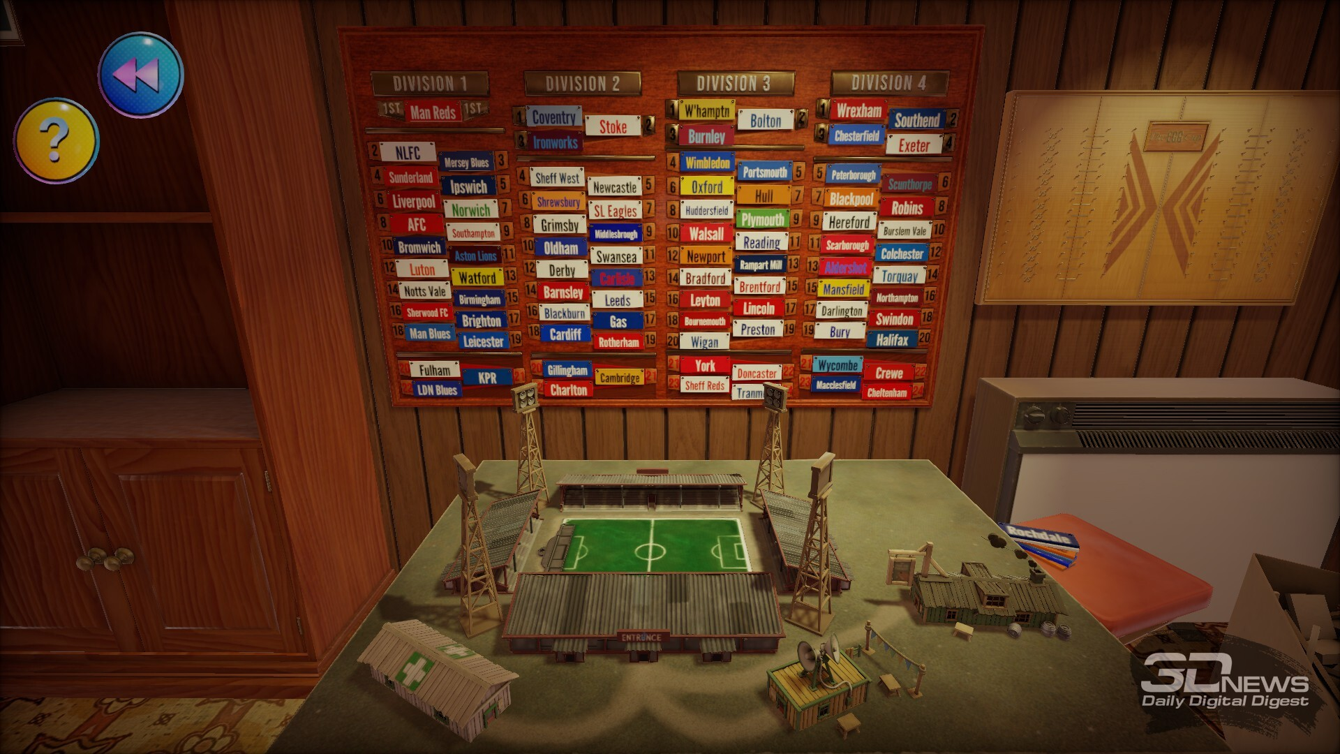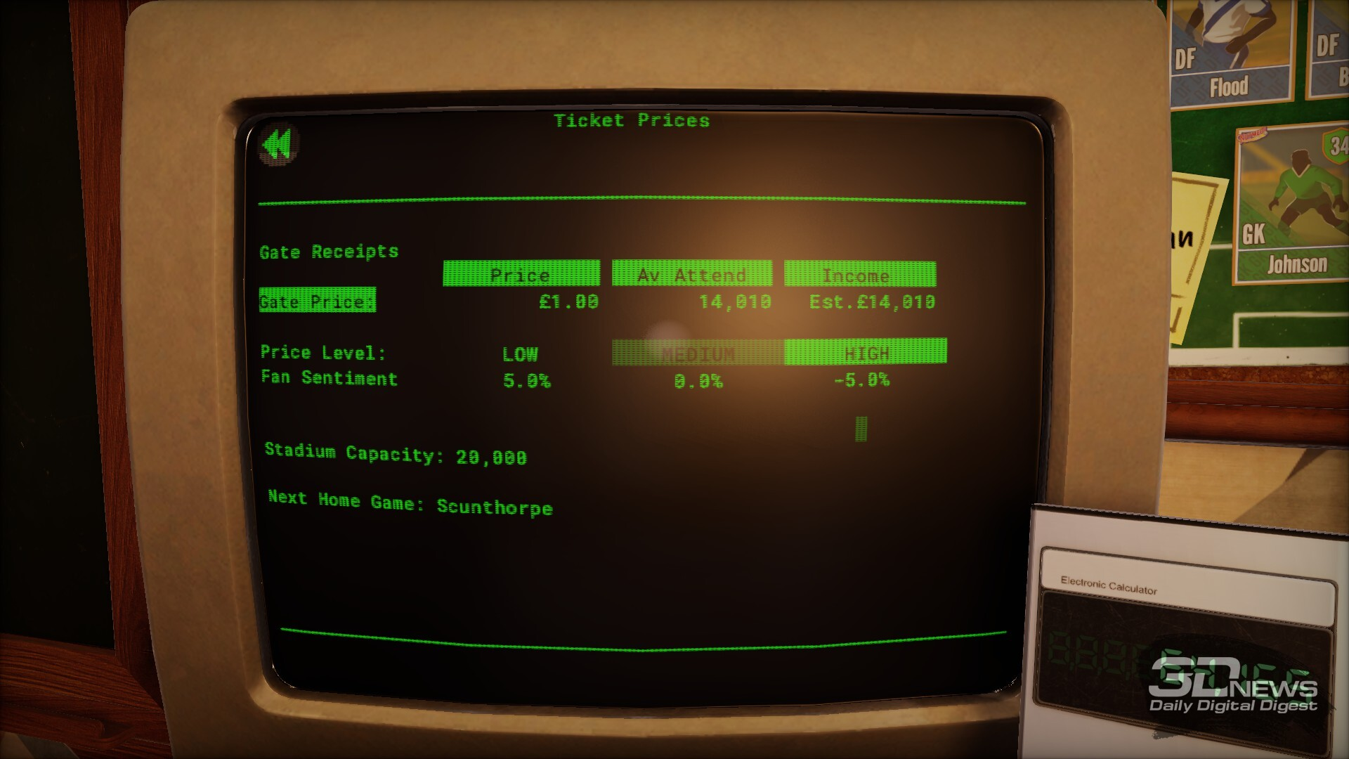 Просто взять старые, как игра The Double, механики — покупаем футболистов, продаём, пиво пьём, забиваем, продаём… А, ой, извините. В общем, просто освежить классический футбольный менеджмент интересной графикой, добавив в неё элементов, от которых пускаешь скупую и не очень слезу, было бы действительно странно. В мире, где серия Football Manager не просто существует, но даже вполне цветёт и развивается, простое сложение куда более (очевидно) казуальных механик и мира английского футбола времён старины далёкой могло бы сработать, но это элементарно даже скучно делать.