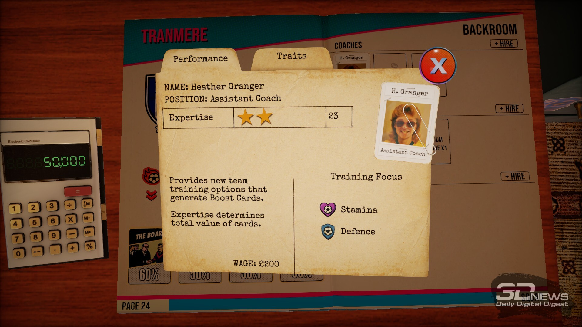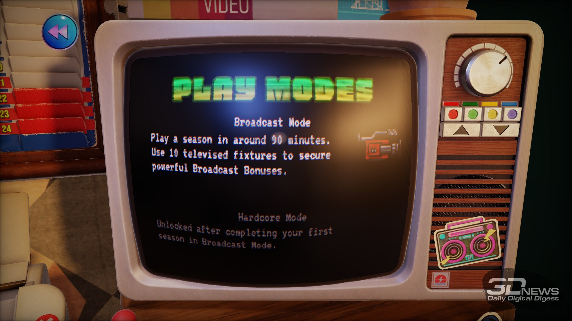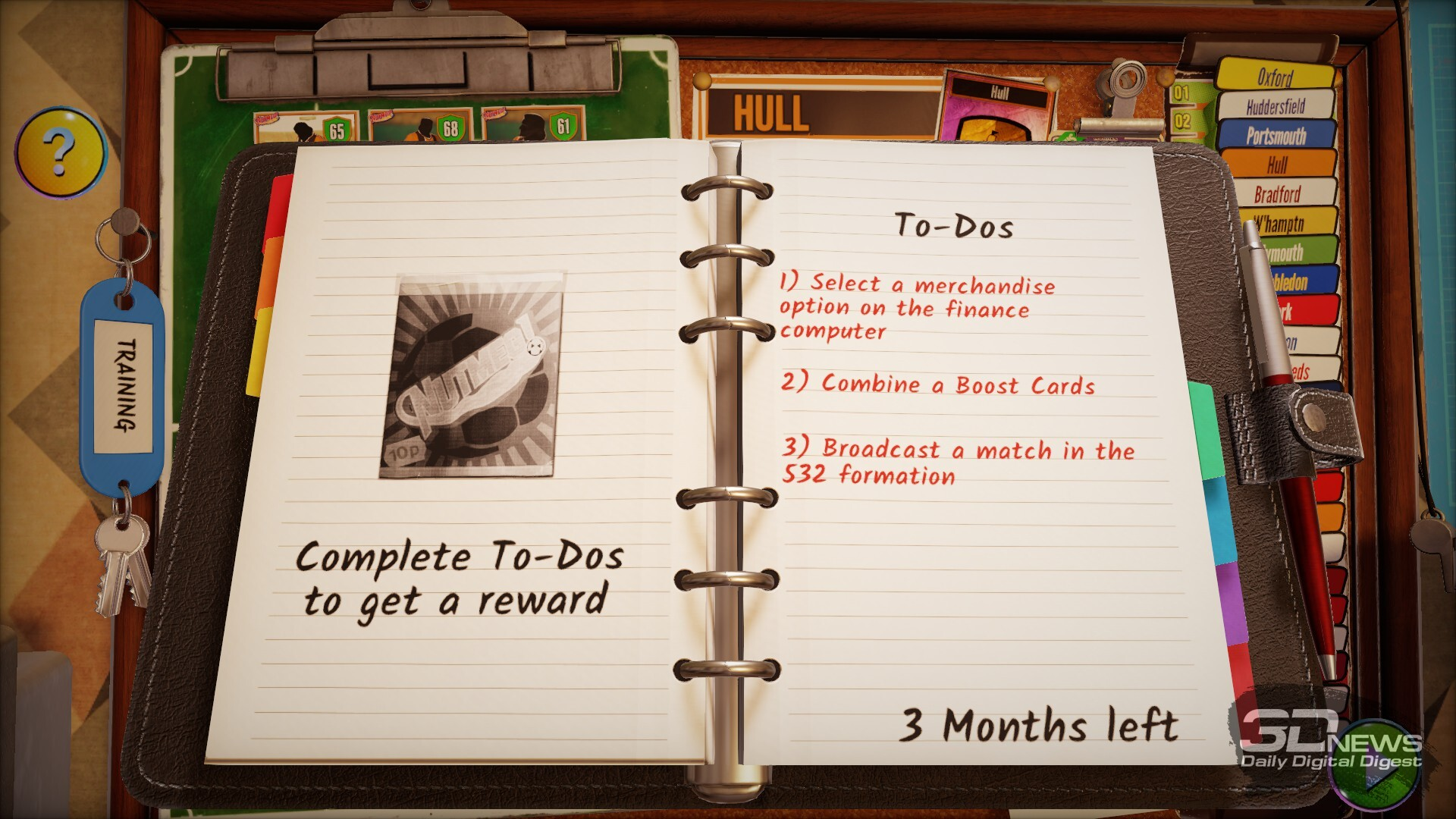 В названии игры примечательно слово Nutmeg — в переводе с английского это мускатный орех, но специя никакого отношения к игре не имеет, конечно. Так в английском сленге называется прокидывание мяча сопернику между ног, то, что по-русски называется «проверить в очко». Но более характерна не сленговая отсылка и не слово Nostalgic — тут как бы всё понятно с первого скриншота, где мы видим реальный рабочий стол с дисковым телефоном, пузатым телевизором, древним компом и другими атрибутами футбольного тренера (правильно даже говорить — менеджера) из Англии 80-х. Нас интересует слово Deckbuilding.