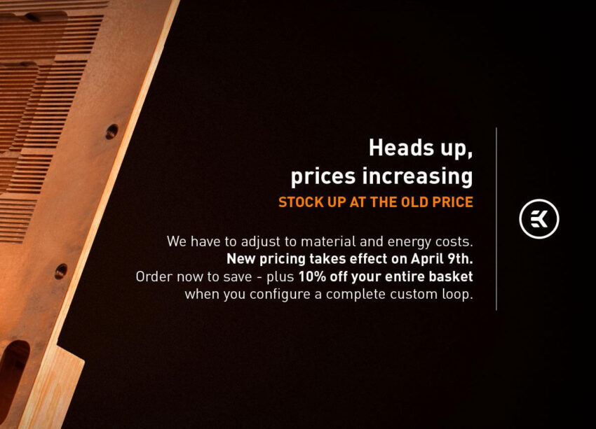 «Цены в Великобритании изменятся 9 апреля. Мы сохраняли наши цены, сколько могли, но нам нужно адаптироваться к растущим затратам на сырьё и энергию. Это не тот рост, который вы видели в сегменте рынка памяти. Мы лишь догоняем другие бренды, которые уже повысили цены на свои системы охлаждения на заказ. Мы планируем ввести новые цены с 9 апреля. Удачи вам в ваших сборках!» — EK.