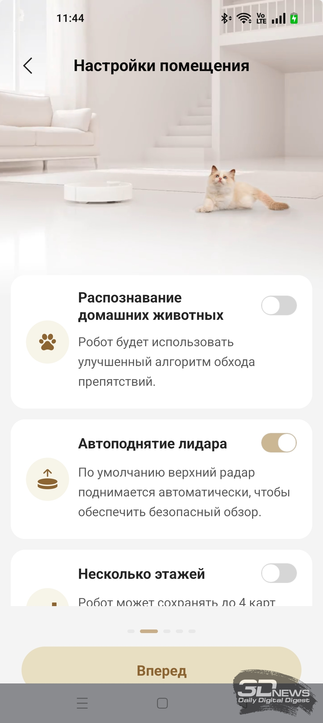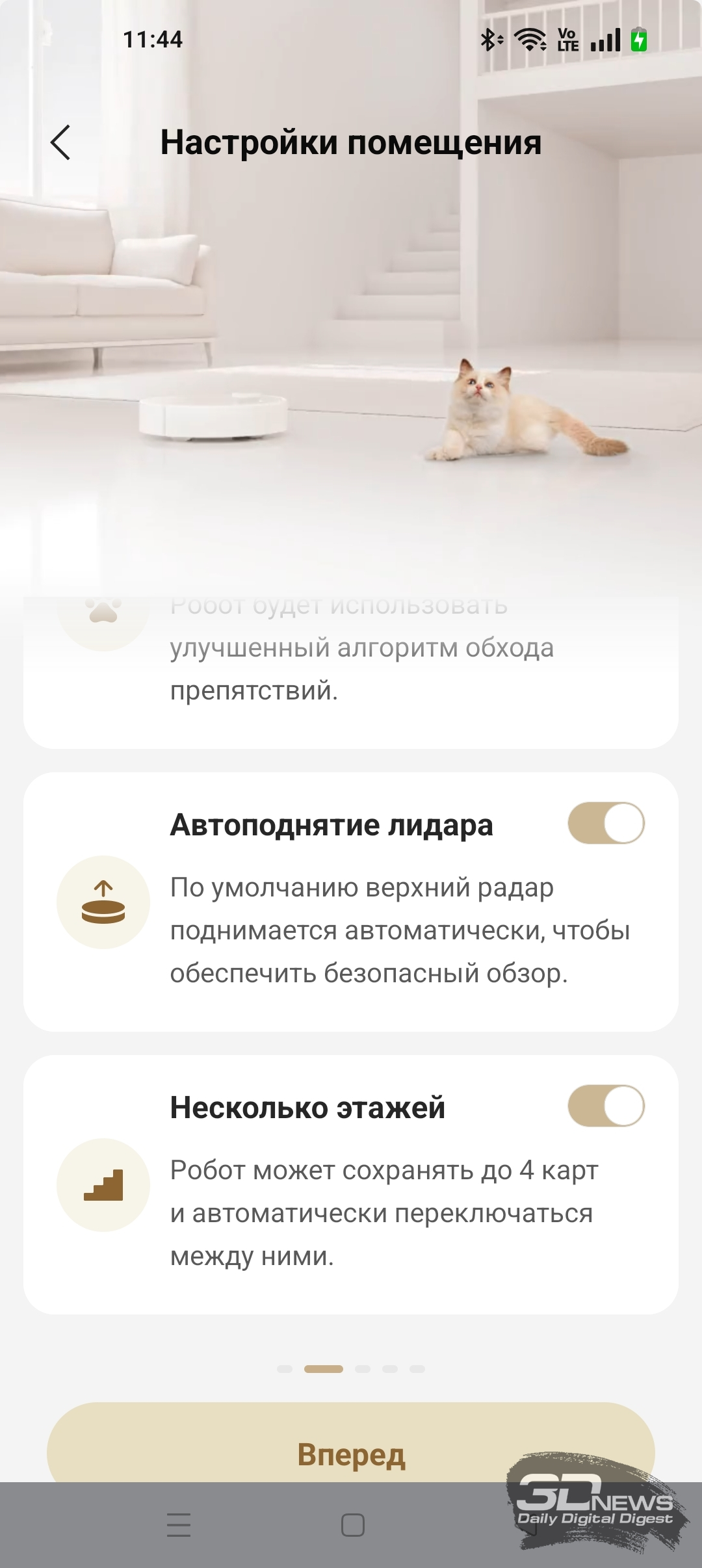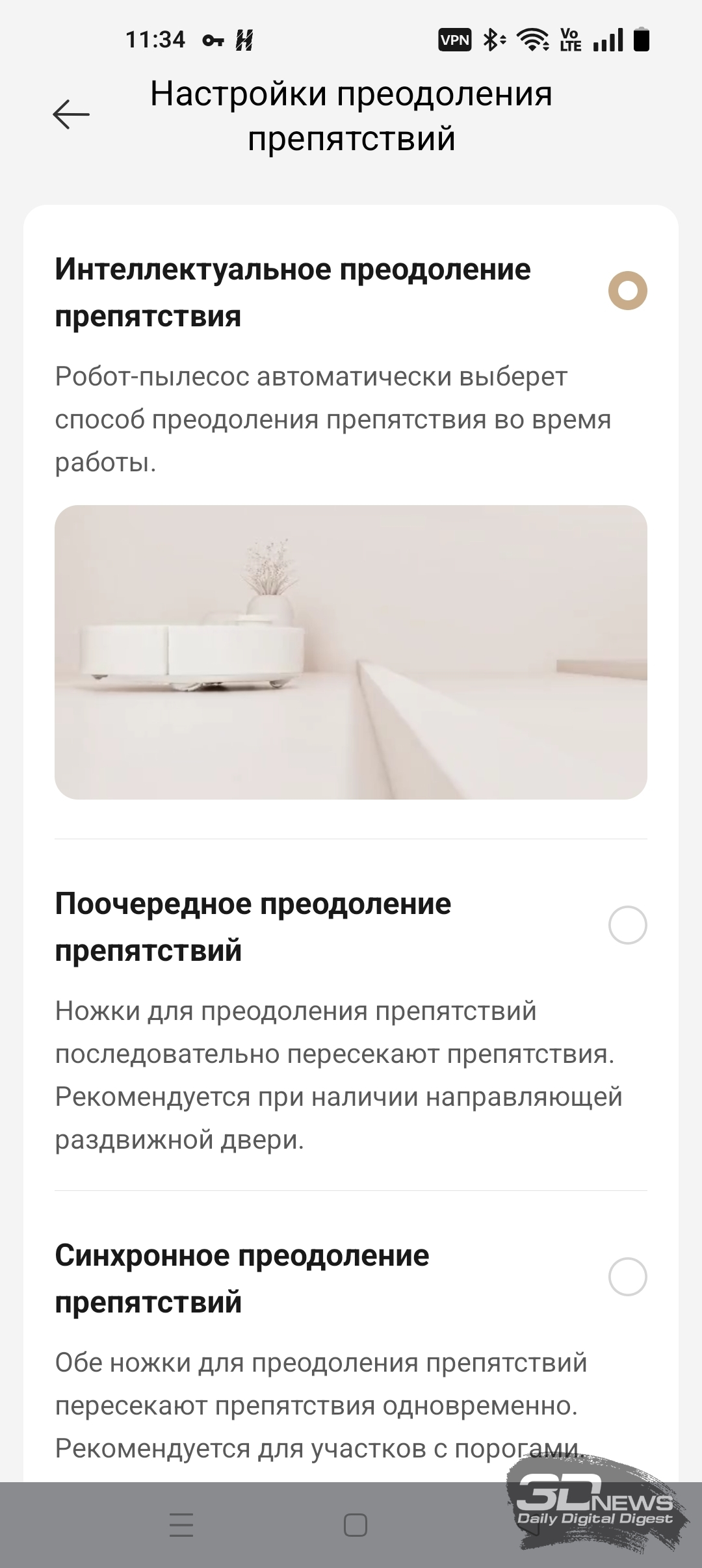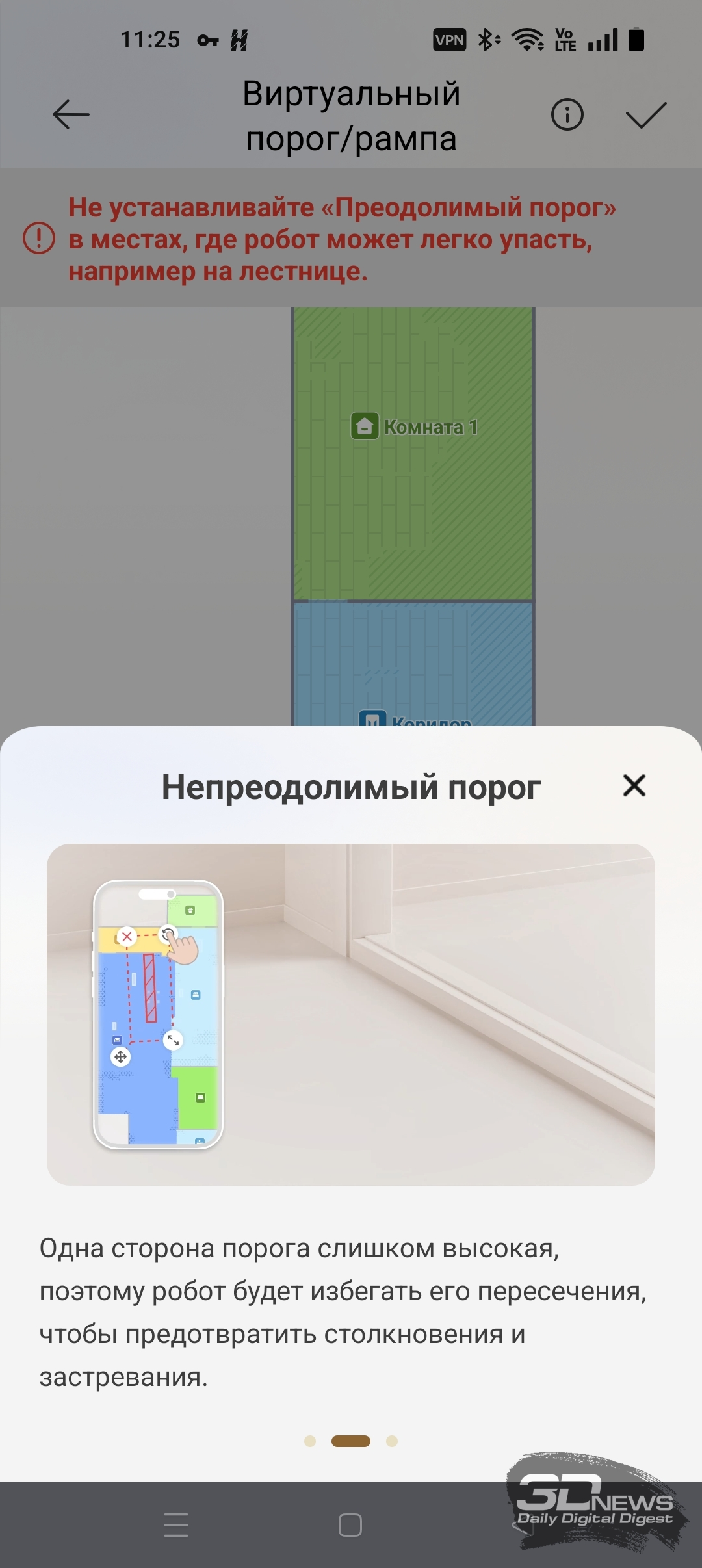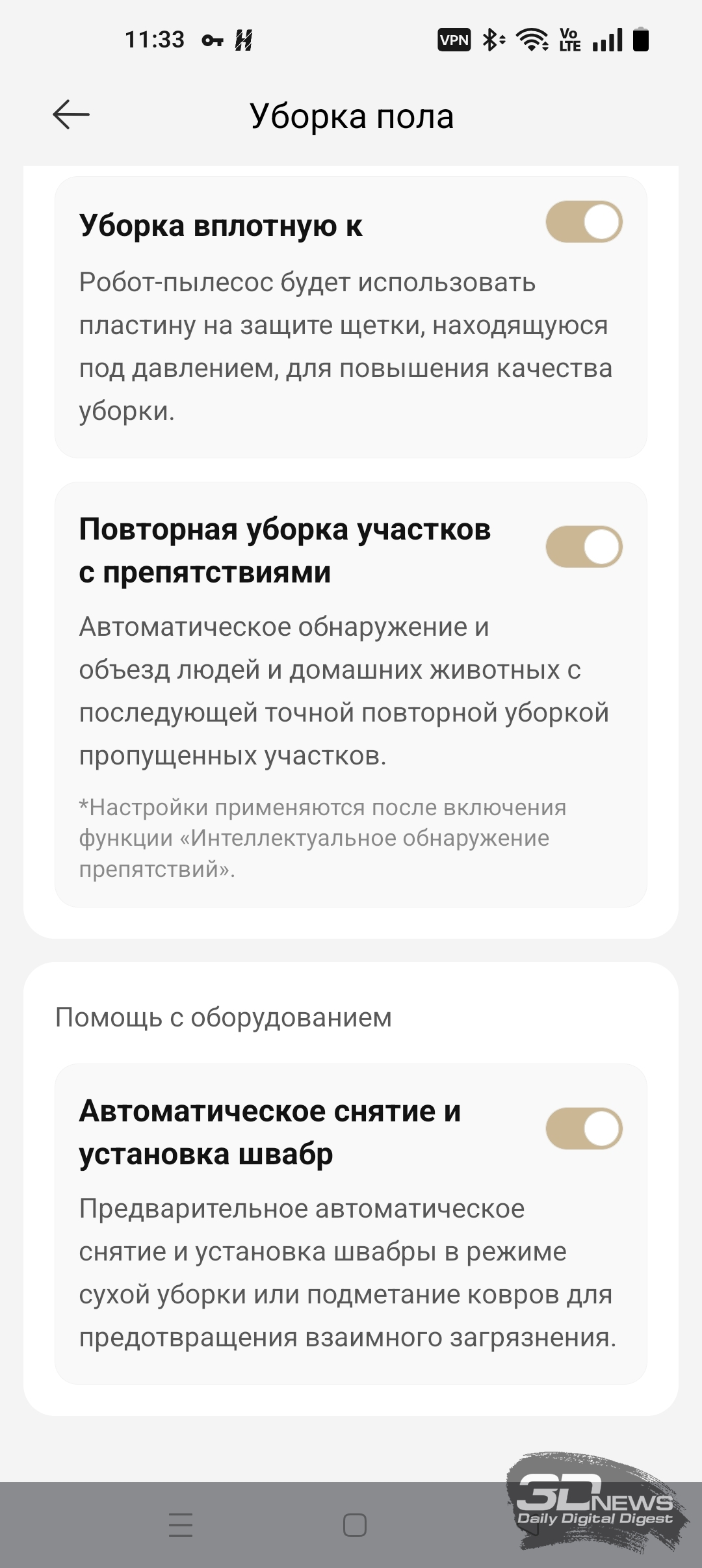 ИИ-функции X60 Ultra Complete позволяют роботу самому определять, когда надо опускать башню, а когда — нет. В приложении Dreamehome доступна функция «Низкорасположенная зона». После ее включения робот чаще заезжает под мебель, опуская лидар.