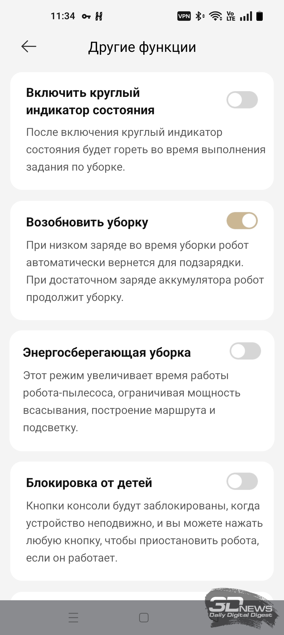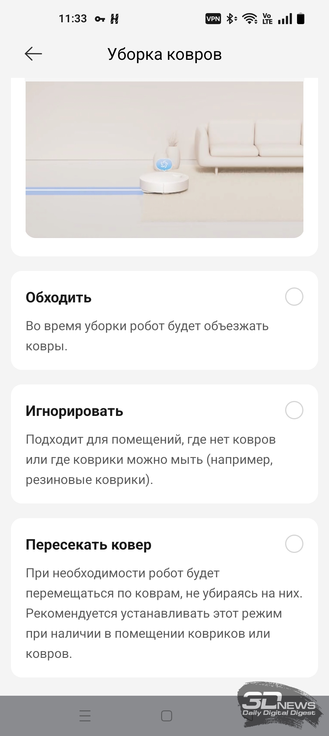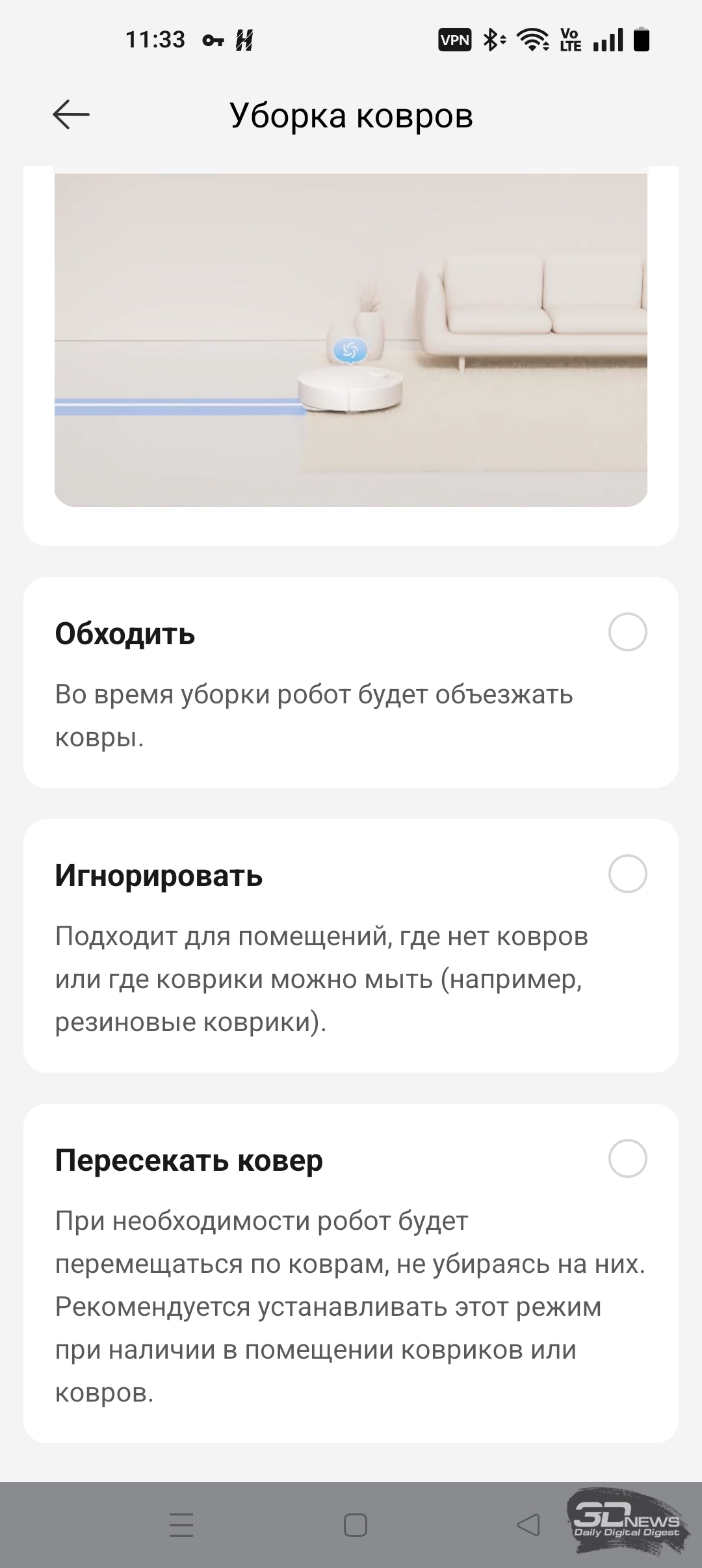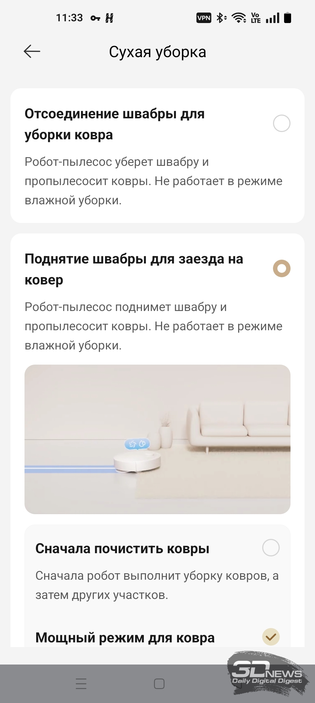 Как уже было сказано, «шестидесятый» обладает большим количеством настроек по уборке пола, ковров, а также по наладке работы док-станции — с описанием некоторых из них вы можете ознакомиться на скриншотах ниже.