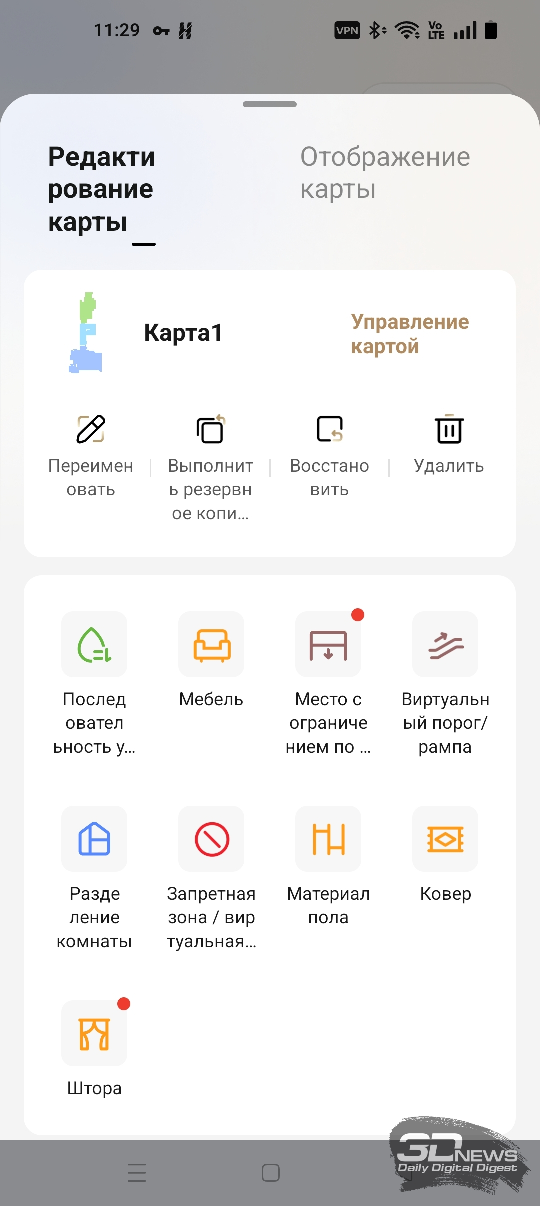 • настроить 3D-карту помещения;