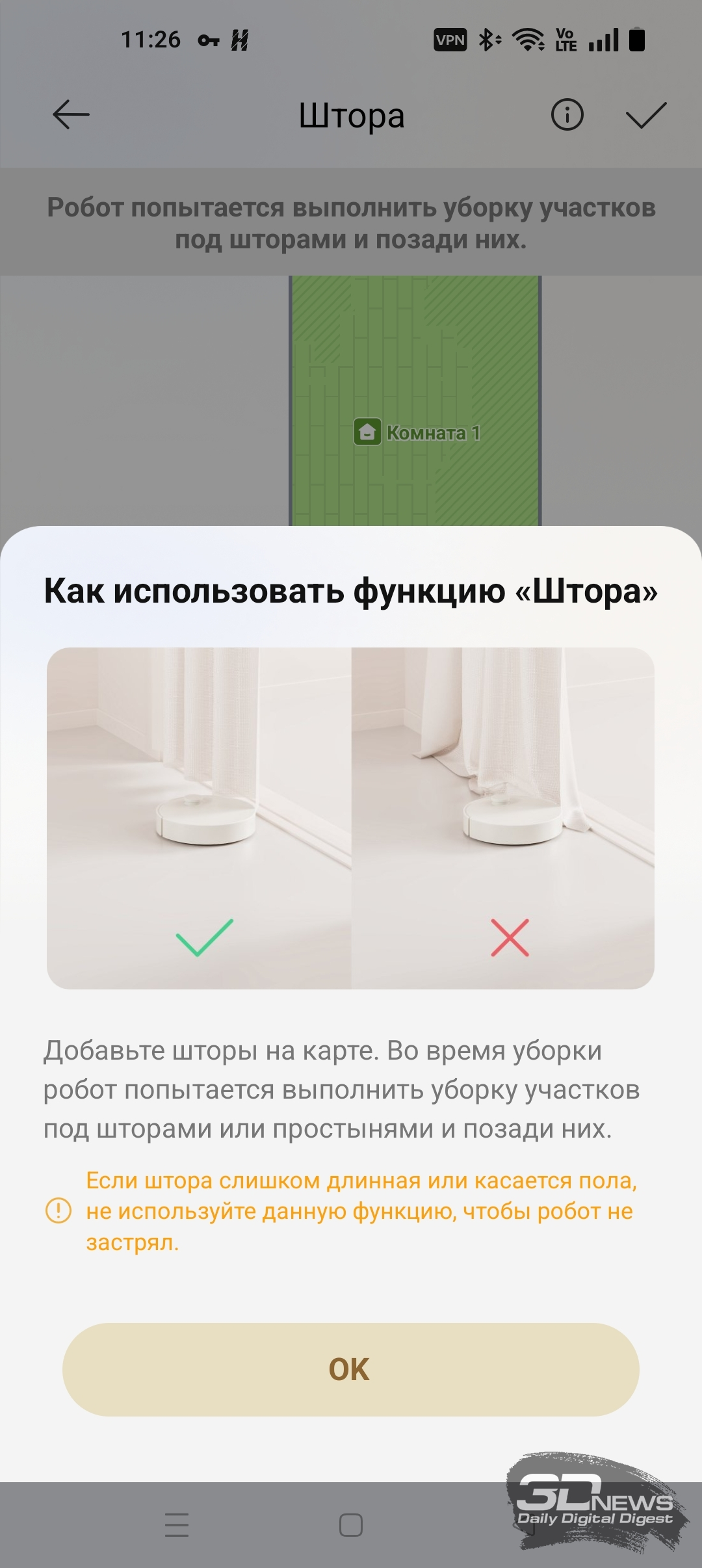 Например, если указать направление укладки ламината и паркета, X60 Ultra Complete будет убираться вдоль него, чтобы не царапать напольное покрытие. А если указать области со шторами, робот начнет активнее заезжать за них. Также в указанных низкорасположенных зонах лидар устройства автоматически опускается.
