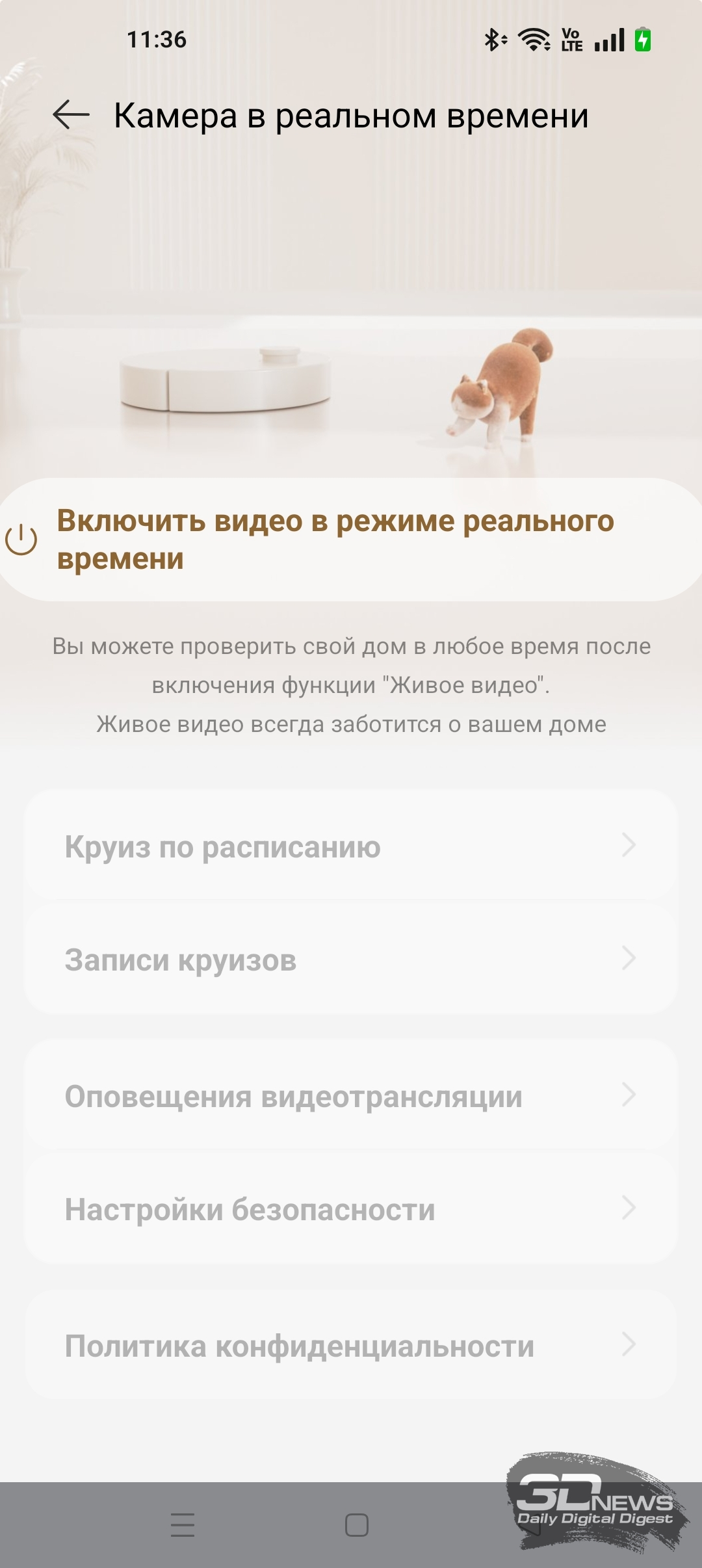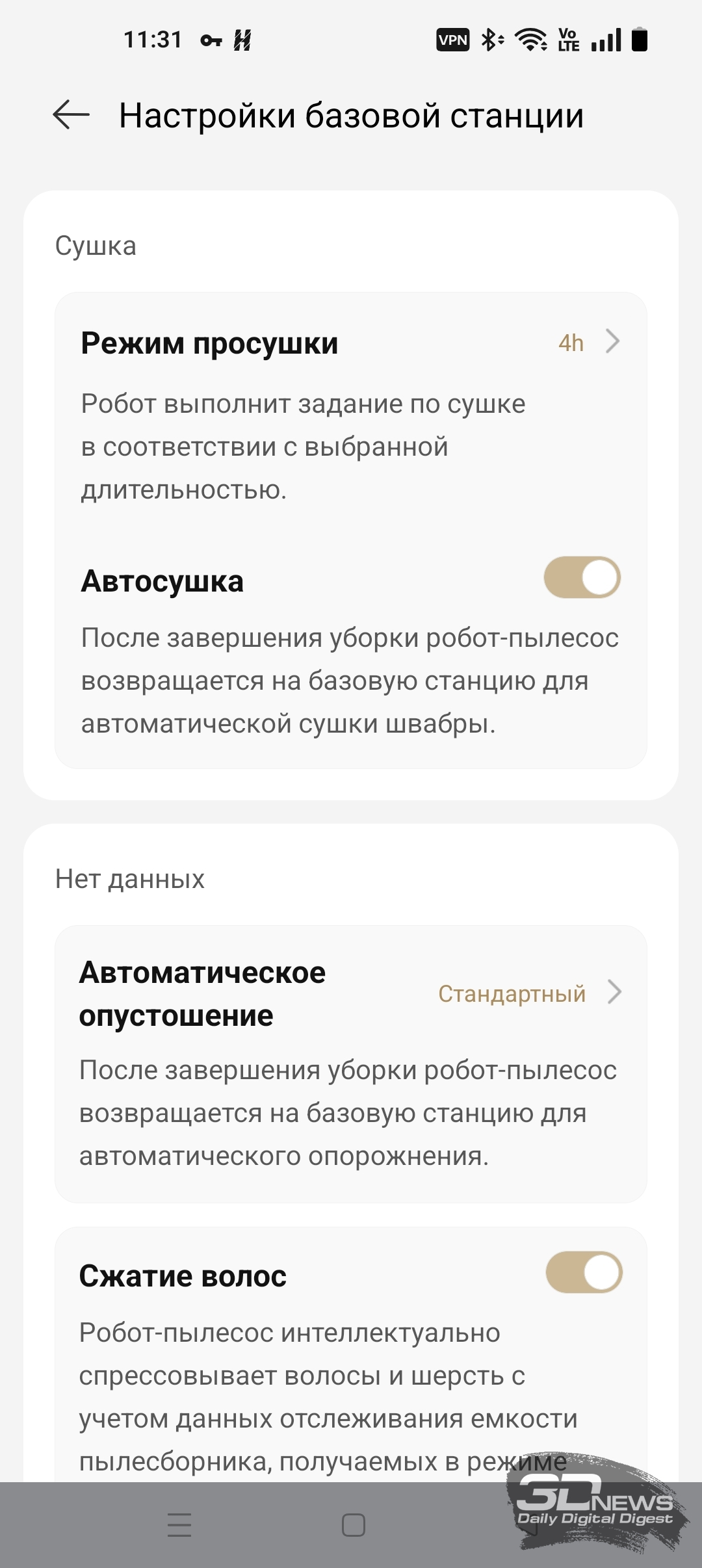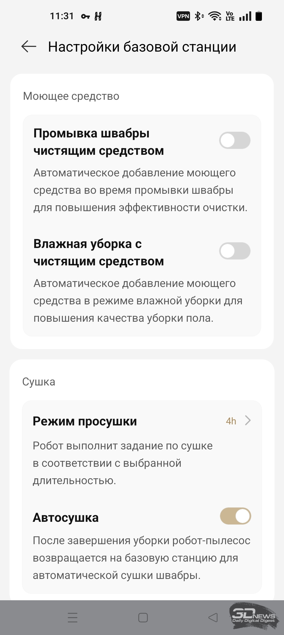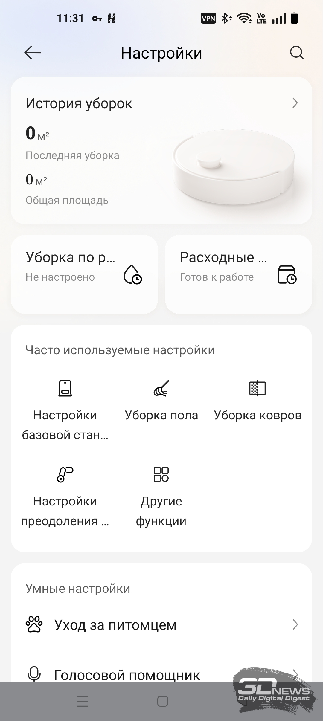 Для полноценной работы «шестидесятого» необходимо установить на смартфон приложение Dreamehome, доступное для операционных систем Android и iOS. Оно предоставляет пользователю настройки по управлению как роботом-пылесосом, так и станцией самоочистки. Утилита полностью переведена на русский язык и обладает большим числом подсказок. Подключение робота к домашней Wi-Fi-сети с общим SSID точек доступа 2,4 и 5 ГГц и комбинированной защитой WPA2/WPA3 не вызвало никаких проблем, а модель устройства определилась по QR-коду. Вся процедура заняла одну-две минуты от силы — необходимы регистрация в приложении и доступ в интернет.
