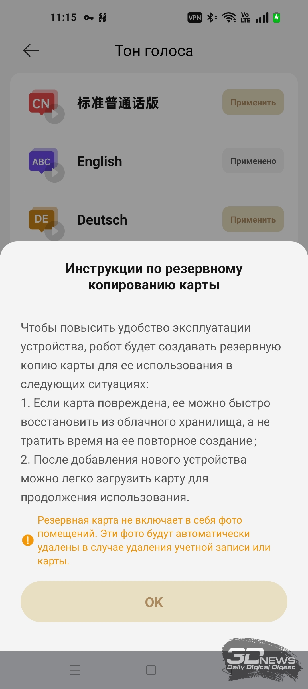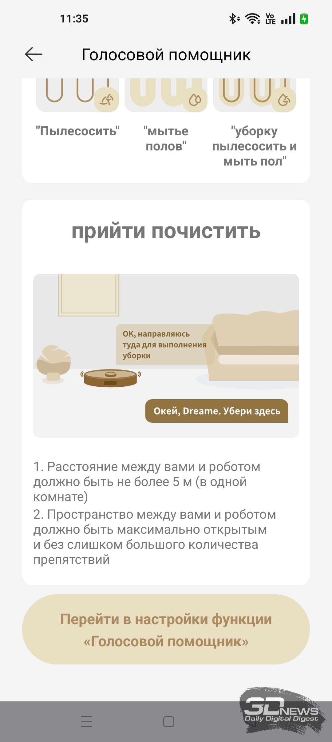 Помимо программы Dreamehome на смартфоне, вы можете управлять X60 Ultra Complete при помощи голосовых команд. Устройство поддерживает сервис собственной разработки. Достаточно произнести команду «Окей, Dreame», чтобы запустить уборку в квартире. Плюс герой обзора, как и другие модели Dreame, совместим с прочими голосовыми помощниками, такими как Siri, Alexa, «Алиса» и «Маруся».