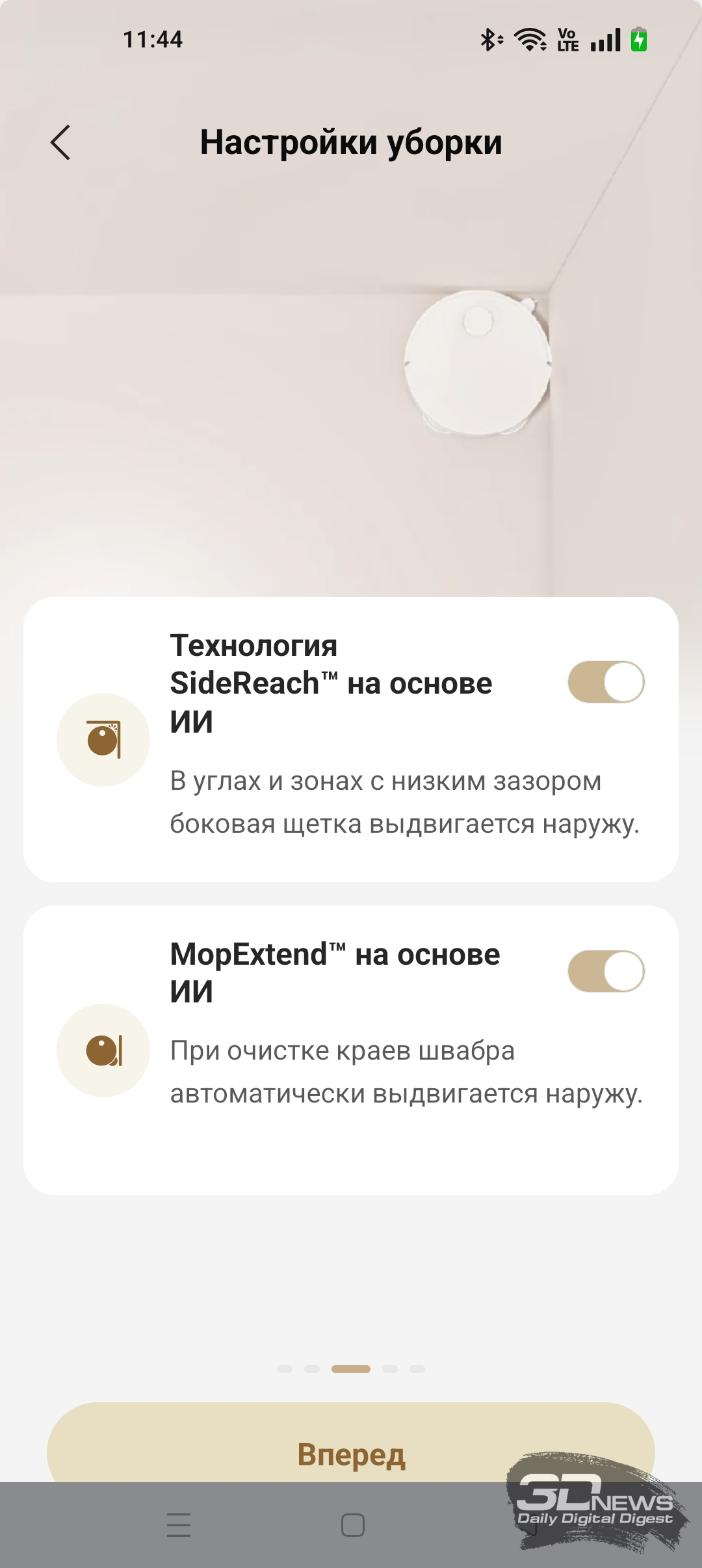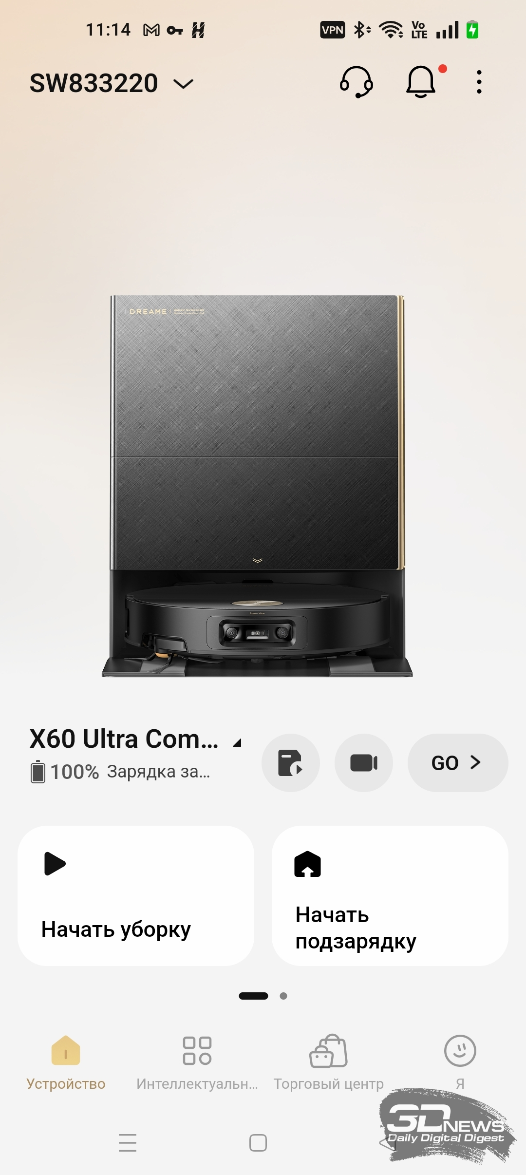 Подключение X60 Ultra Complete к Сети и мобильному приложению происходит очень быстро. Программа Dreamehome требует авторизации и доступа к интернету. После входа в аккаунт приложение введет пользователя в курс дела, указав на основные важные функции робота-уборщика. Затем обновляется прошивка устройства — придется подождать несколько минут. И вот теперь X60 Ultra Complete готов к работе!