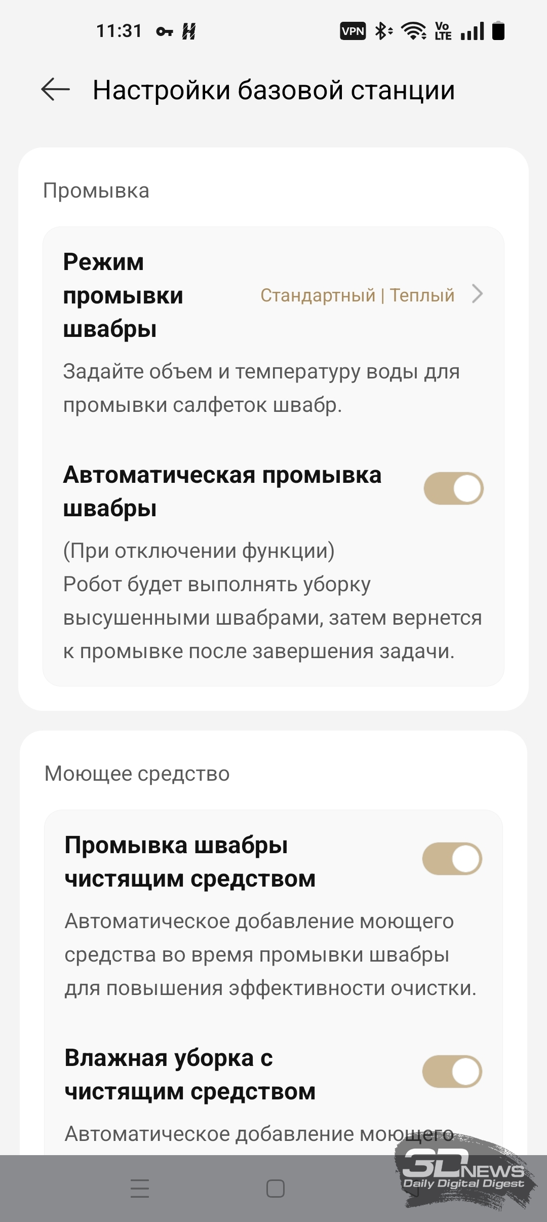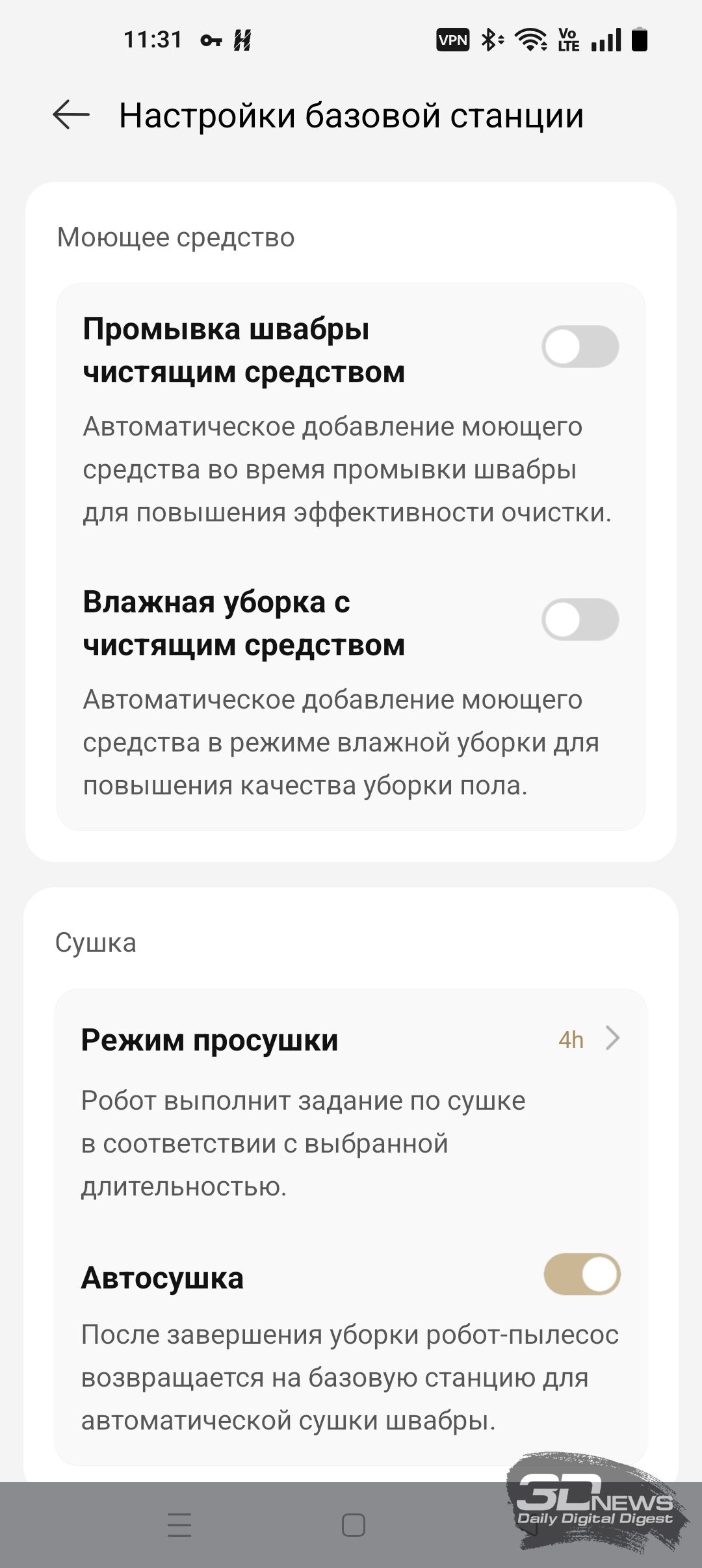 К сожалению, невозможно определить эффективность флажной уборки X60 Ultra Complete с точностью до процентов. На наш взгляд, робот Dreame хорошо справляется с мойкой полов — выдвигающиеся щетки позволяют тщательно протирать поверхность у стен и вокруг мебели. Не забываем, что док-станцию и сам уборщик умеют использовать моющие средства, а режимы в приложении Dreamehome позволяют настроить тщательность этого процесса.