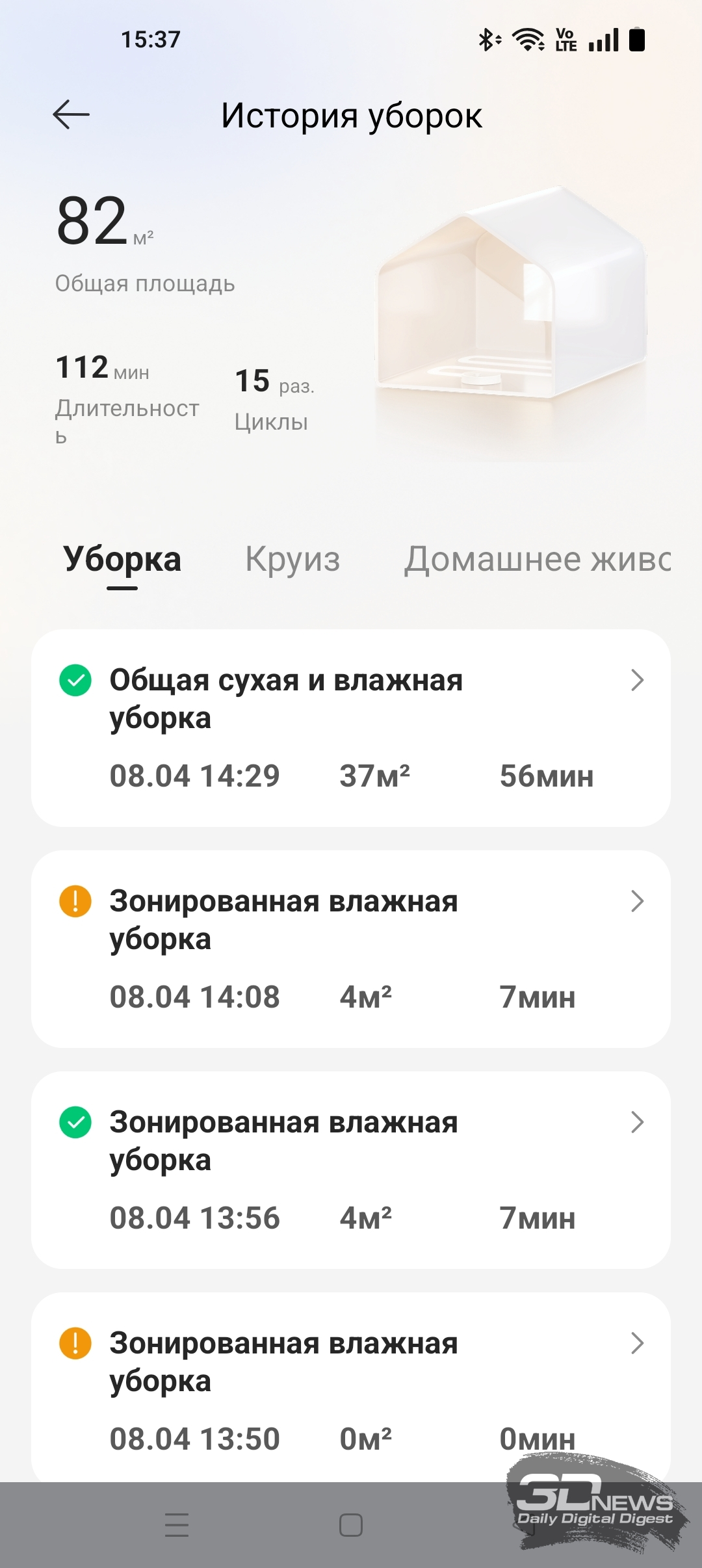 • посмотреть историю уборок;
