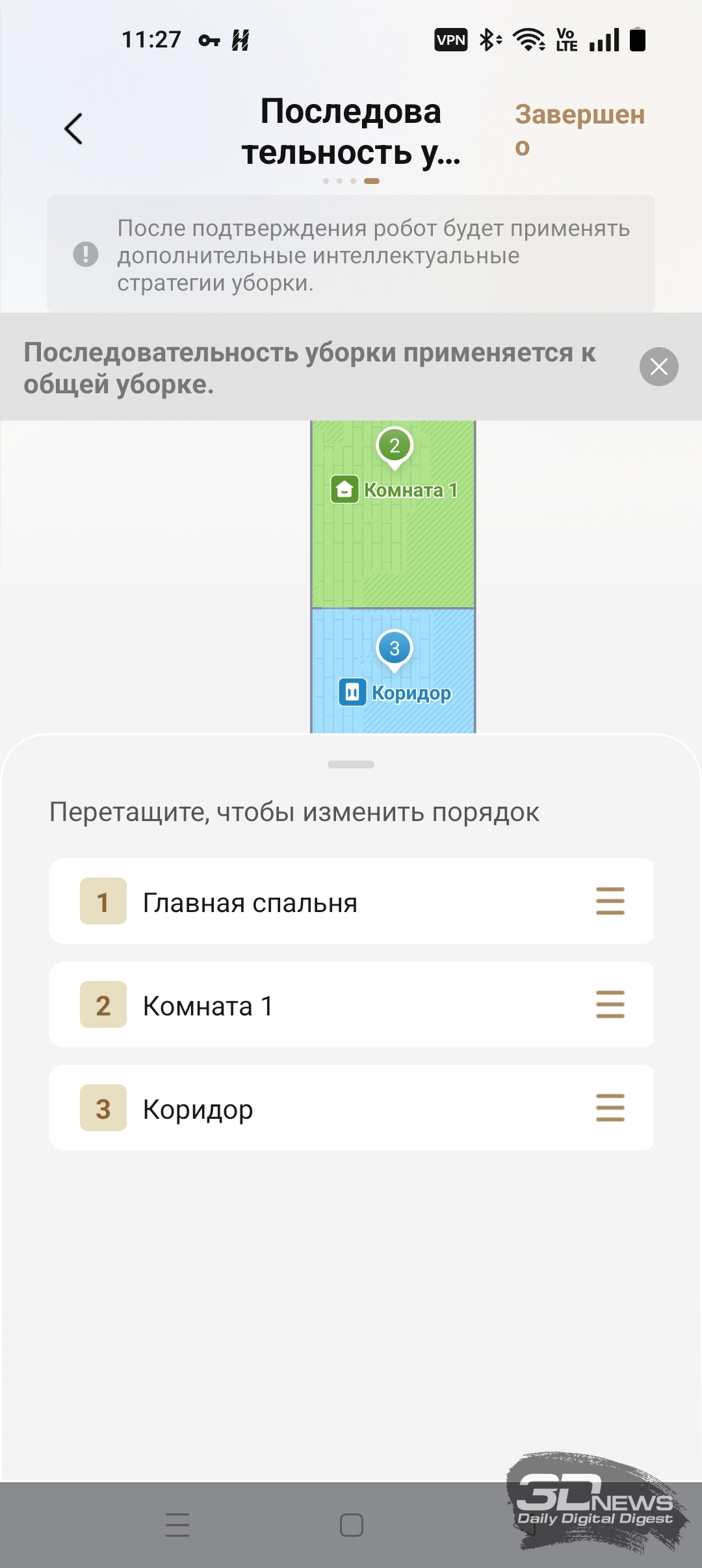 • настроить уборку каждой комнаты отдельно;