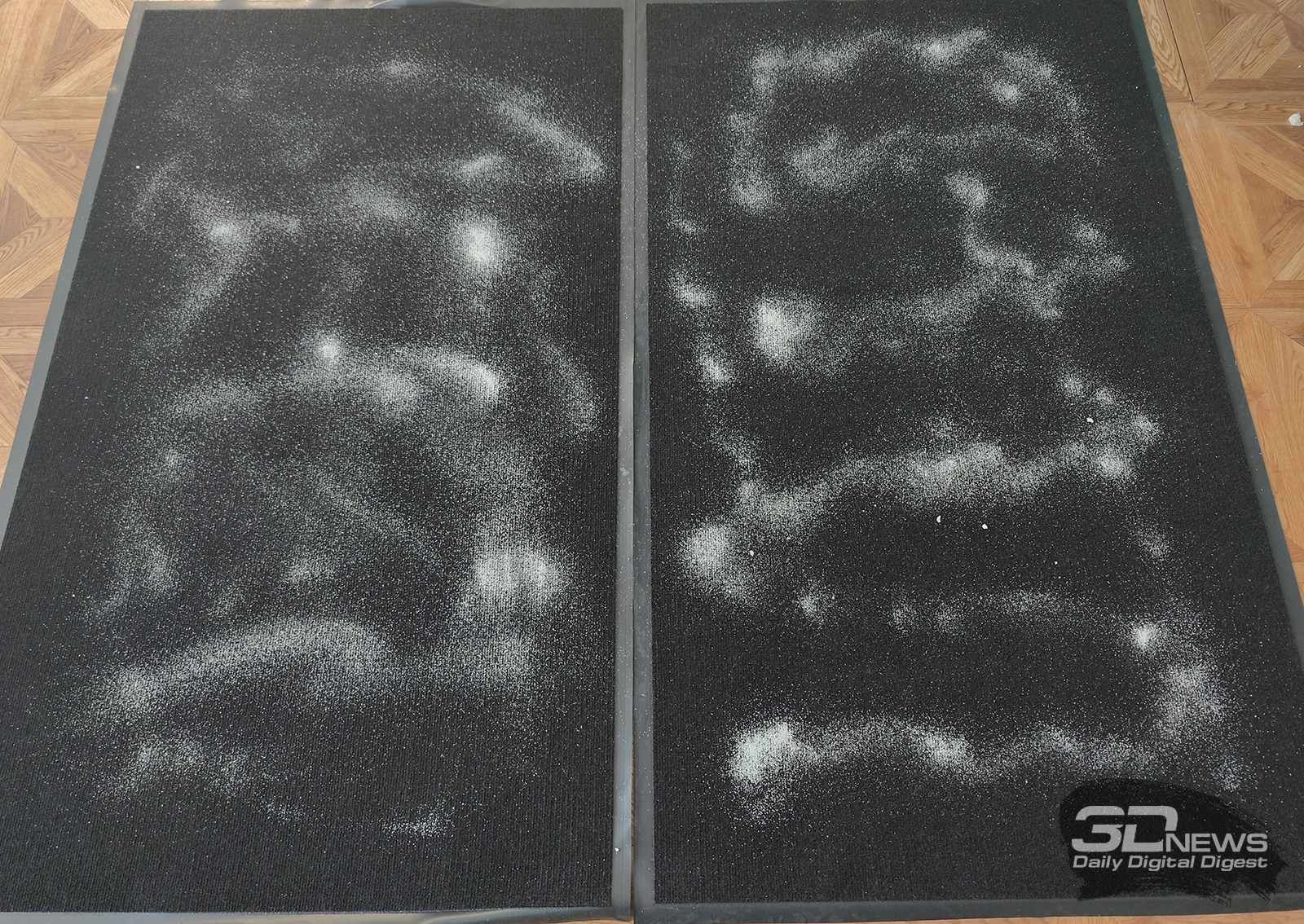 Для определения эффективности работы умного уборщика мы устроили ему довольно сложное испытание. Предыдущие тесты показали, что роботам слишком легко справиться с крупной фракцией мусора (гречка, рис и т. д.), но очень трудно извлечь из ворса мелкие частицы (мука). Поэтому был выбран промежуточный вариант — сахар, сбор которого укажет, насколько эффективно работают щетки и всасывающий двигатель устройства.