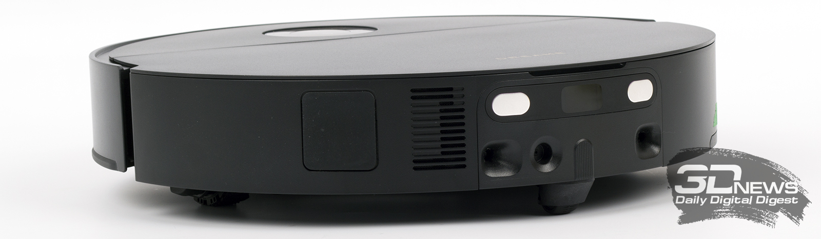 Внешне X60 Ultra Complete очень похож на X50 Ultra Complete — чувствуется, что называется, почерк. Корпус пылесоса выполнен из пластика преимущественно матовой текстуры. Цвет — необычный. Вроде бы и черный, но с легким карбоновым оттенком. Сам робот стал компактнее: высота корпуса при опущенном лазерном радаре составляет всего 79,5 мм — против 89 мм у X50 Ultra Complete. Следовательно, герой обзора легко проберется туда, куда не смогут попасть прочие умные уборщики. Значит, мы можем говорить об улучшении качества уборки устройством в помещении.