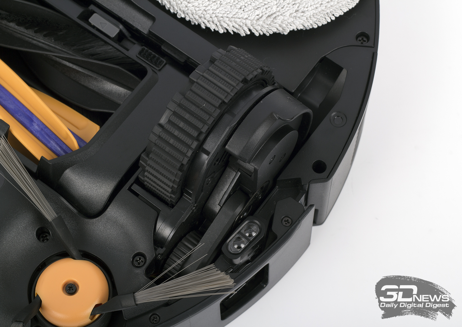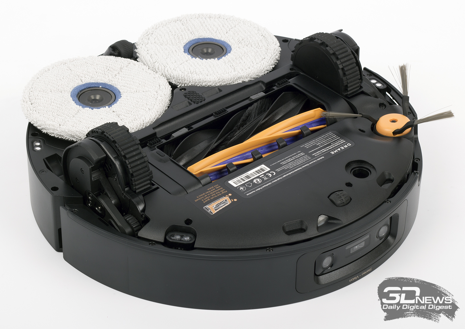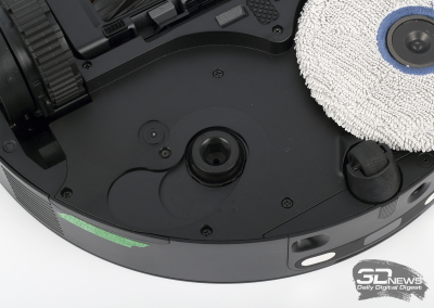 Боковая щетка и швабры поднимаются на высоту до 10,5 мм. Эта функция пригодится, если в квартире есть ковры — на такой поверхности по умолчанию работает только система HyperStream робота (можно настроить в мобильном приложении). В режиме только сухой уборки устройство путешествует вообще без швабр.