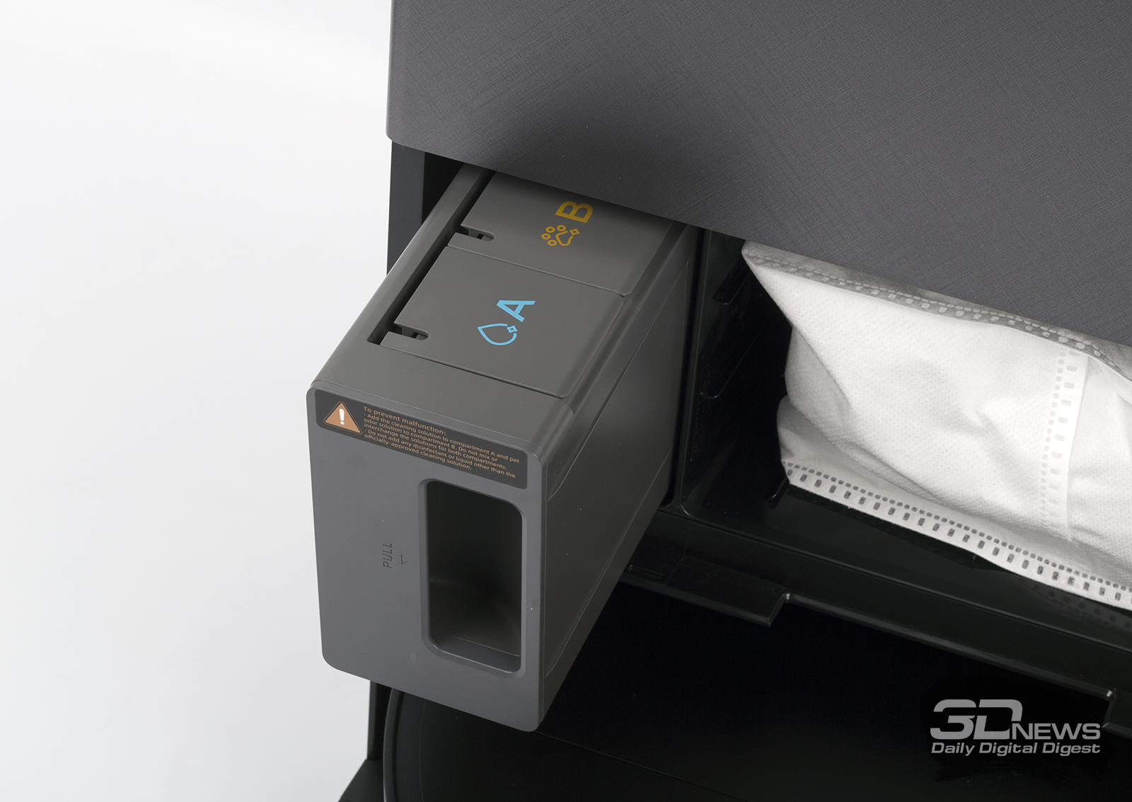 Конструкция и функциональность модуля самоочистки предельно просты: сверху в специальной полости помещены контейнеры для чистой и отработанной воды; посередине за пластиковой панелью спрятаны одноразовый мешок для сбора пыли и бак для заливки моющего средства; внизу расположена ниша для парковки робота и ванна для мойки салфеток и чистки щеток. Помимо зарядки уборщика и перемещения сухого мусора из его контейнера в одноразовый мешок-пылесборник, док-станция моет швабры и сушит их. Система ThermoHub нагревает воду до 100 градусов Цельсия — удаление бактерий осуществляется с 99-процентной эффективностью. Наконец, станцию PowerDock можно напрямую подключить к водопроводу — вся необходимая фурнитура продается отдельно.