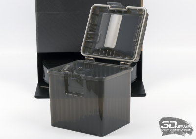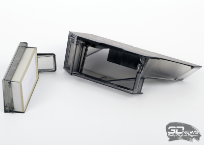 Верхняя пластиковая панель «шестидесятого» легко снимается. Так мы получаем доступ к контейнеру для сбора мусора. «Ящик» имеет стандартную конструкцию и оснащен съемным HEPA-фильтром — его очень просто обслуживать. А еще X60 Ultra Complete оснащен небольшим несъемным резервуаром для воды — он скрыт внутри корпуса и не подлежит обслуживанию силами пользователя.