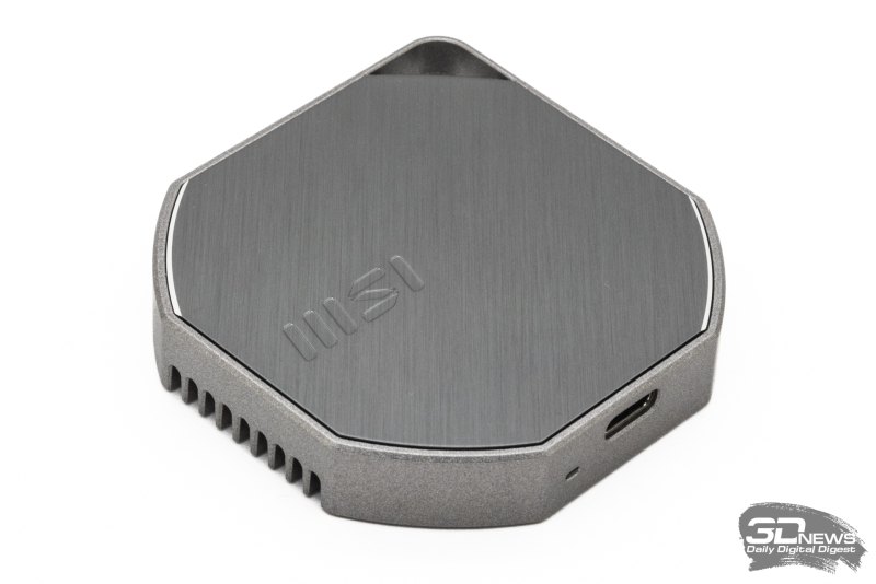 Важный момент: чтобы получить реальные скорости, сопоставимые с указанными в таблице, Datamag 40Gbps требуется подключать именно к порту USB4 40 Гбит/с (или Thunderbolt 4/5). С более старыми портами накопитель останется полностью работоспособным, но сильно потеряет в производительности. Например, пропускная способность USB 3.2 Gen 2×2 не позволит получить от внешнего SSD скорость выше 2 Гбайт/с, а порта USB 3 Gen 2 – выше 1,2 Гбайт/с. И это необходимо иметь в виду, поскольку порты USB4 нельзя назвать повсеместно распространённым решением. Лучше всего дело с поддержкой USB4 дело обстоит в ноутбуках. Такие порты стали появляться в ноутбуках на платформе Intel, начиная с моделей, основанных на процессорах 11-го поколения (Tiger Lake). А более современные модели на Meteor Lake, Lunar Lake и Arrow Lake обладают портами Thunderbolt 4/5 (совместимыми с USB4) почти наверняка (кроме, разве только, бюджетных моделей). Скорее всего будут оснащены портами USB4 и современные ноутбуки на платформе AMD, в частности, на процессорах Ryzen 7040/8040, Ryzen AI 300 (Strix Point) и новее. Не являются исключением и Mac: все компьютеры Apple на процессорах M1 и новее оборудуются портами Thunderbolt, совместимыми с USB4-накопителями и не ограничивающими их полную скорость. Есть порты Thunderbolt 4/USB4 и у наиболее современных десктопов. В платформе AMD рассчитывать на наличие таких портов могут обладатели материнских плат чипсетах X870/X870E и иногда — X670E. А в платформе Intel на LGA 1851-платах с чипсетами Z890 и B860 обычно есть порт Thunderbolt 4, который тоже может работать с USB4-устройствами с необходимой скоростью 40 Гбит/с. Однако по странному стечению обстоятельств исключением из этого правила служат материнские платы самой компании MSI, которая зачем-то урезала поддержку USB4-устройств в своих LGA 1851-решениях. И хотя они формально располагают портами Thunderbolt 4, как и материнки других производителей, максимальная скорость Datamag 40Gbps при подключении к ним не будет превышать 20 Гбит/с. Что же касается смартфонов, то для них накопитель именно с интерфейсом USB4 бесполезен. Ни один современный смартфон не поддерживает портов с пропускной способностью 40 Гбит/с, в лучшем случае ограничиваясь портами USB 3.2 Gen 2 и изредка USB 3.2 Gen 2×2. Поэтому Datamag 40Gbps — не совсем массовое решение. Скорее это высококлассный инструмент, который способен полностью раскрыть весь свой потенциал только в современных флагманских ноутбуках и десктопах 2023–2026 годов выпуска с USB4/Thunderbolt. Возвращаясь к прочим спецификациям, стоит заметить, что с выпуском Datamag 40Gbps компания MSI несколько ужесточила условия гарантии. Теперь к пятилетнему гарантийному сроку добавлены ограничения по максимальному объёму операций перезаписи — точно так же, как в случае обычных внутренних SSD. Пользователю разрешается полностью перезаписать ёмкость не более 750 раз, что в случае внешнего накопителя выглядит довольно небольшим ресурсом. С другой стороны, это ограничение типично и обуславливается ресурсом современной флеш-памяти, которая используется в Datamag 40Gbps. ⇡#Про MSI Datamag 40Gbps в подробностях Внешний SSD — устройство, которое часто путешествует вместе с владельцем, попадается на глаза и используется «на ходу», поэтому его дизайн и удобство имеют едва ли не большее значение, чем чистая скорость. MSI продолжила развитие своей удачной «магнитной» концепции и в Datamag 40Gbps практически не изменила форму и конструкцию корпуса по сравнению с предыдущей 20-Гбит/с моде