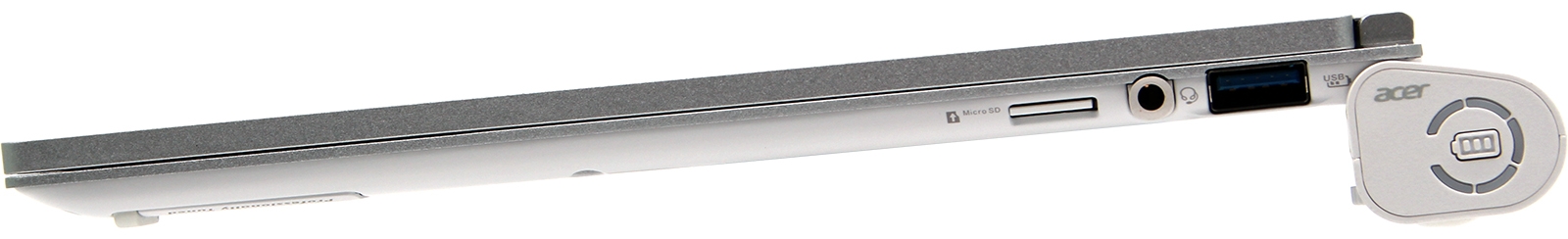 Внешне 11-дюймовая модель серии Aspire S7 вроде бы мало отличается от 13-дюймовой. На самом деле это не так: если присмотреться, то становятся видны очень серьезные отличия — крышка ультрабука сделана совершенно по-другому. В Acer Aspire S7-391 обе стороны крышки покрыты стеклом: прозрачным с той стороны, где дисплей, и с белой подложкой на задней стороне — и все это великолепие обрамлено достаточно толстой металлической рамой. В 11-дюймовом Aspire S7-191 стекла нет вовсе: крышка алюминиевая, с интересной обработкой поверхности — вживую выглядит очень изящно. Дисплей же покрыт не стеклом, а каким-то прозрачным полимером. Палец, особенно в жаркую погоду, скользит по нему немного хуже. А вот нижняя половинка 11-дюймовой модели действительно устроена совершенно так же, как и в «тринашке»: верхняя часть выполнена из фрезерованного алюминия, нижняя отлита из магниевого сплава и окрашена в белый цвет хорошей, стойкой к мелким повреждениям краской. Корпус Aspire S7-191 на долю миллиметра толще, чем у 13-дюймовой модели: если вы думали, что компактная версия S7 будет тоньше полноразмерной, то мы вынуждены вас разочаровать. С другой стороны, куда уж тоньше? Клавиатура точно такая же, как в Aspire S7-391: с очень коротким ходом клавиш и отрезанным рядом F1-F12, что на практике выливается в очень большое количество совмещенных значений. Разумеется, это не слишком удобно — хотя и не так ужасно, как может показаться на первый взгляд. Как и в старшей модели, имеется электролюминесцентная подсветка клавиш. Выглядит не так красиво, как более привычная светодиодная, — свечение гораздо более тусклое. Но со своей основной задачей подсветка справляется — разглядеть в темноте нужную клавишу не составляет труда. Подсветку можно включить либо вручную, не очень удобным сочетанием клавиш Fn + Ш, либо доверить это дело автомату Сенсорная панель несколько меньше, чем в 13-дюймовой модели. Она «бескнопочная», работает в связке с Full HD-дисплеем недостаточно хорошо: чтобы не промахнуться мимо мелких элементов интерфейса, приходится сильно повозиться. Дело осложняется двумя моментами: во-первых, из-за не самого лучшего покрытия процесс точного наведения указателя достаточно мучителен сам по себе. А во-вторых, из-за «бескнопочной» конструкции в сочетании с несовершенством драйвера после долгого прицеливания «клик» или «тап» может не получиться, «смазаться». Так что придется целиться заново. Вероятно, можно не говорить, что душевного покоя все эти пляски не добавляют. Комплект поставки как бы намекает нам на то, что данная проблема не является тайной для маркетингового отдела Acer. Ее не считают настолько уж насущной, чтобы довести до ума покрытие панели или добиться от поставщика тачпада вменяемого драйвера. Но по крайней мере готовы чуть-чуть раскошелиться на мышь. Раз уж мы заговорили про комплект поставки, то разделаемся с ним полностью, не отходя от кассы. Вообще, комплектация Aspire S7-191 весьма богата: помимо мышки и дополнительного аккумулятора (о котором ниже) в коробке также можно найти вполне добротный чехол. Правда, чехол довольно тяжелый — весит больше 200 грамм, на фоне килограммовой массы самого ноутбука это довольно много. Еще в комплекте есть переходник с компактного разъема micro HDMI на стандартный VGA, через который можно подключить любой, даже самый доисторический проектор. Но и это еще не вс