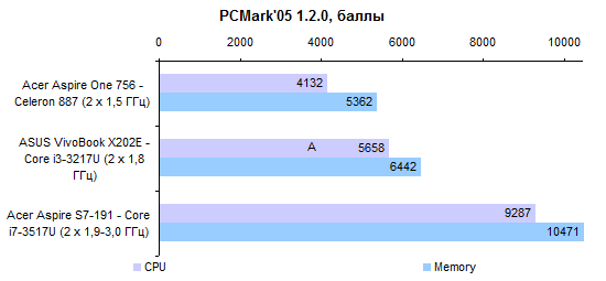 Core i7-3517U — один из самых быстрых процессоров в низковольтной линейке Intel. Так что производительность предсказуемо высока. Другое дело, что покупать конфигурацию с этим чипом вряд ли имеет смысл — она обходится достаточно дорого.