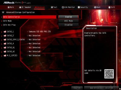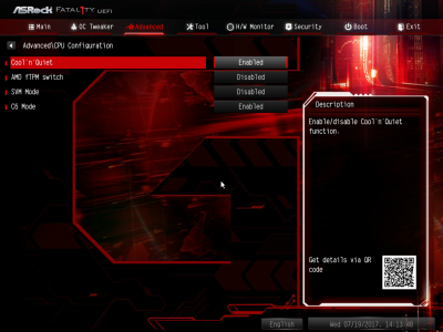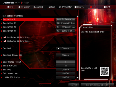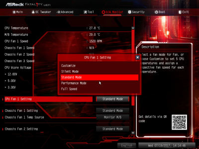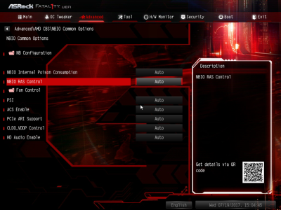 Смотреть все изображения (7) С функциональностью ASRock Fatal1ty AB350 Gaming K4 разобрались. Перейдем к такому параметру, как надежность. По словам производителя, конвертер питания материнской платы состоит из девяти фаз. Об этом можно судить, если посчитать количество катушек индуктивности, распаянных вокруг сокета. Однако в устройстве применяется 7-фазный ШИМ-контроллер Intersil ISL95712. На самом деле у «Фаталити» присутствует шесть фаз, три из них отвечают за процессорное напряжение, еще столько же — за CPU NB/SoC Voltage. В первом случае применяется удвоенное число элементов на канал, то есть четыре MOSFET и два дросселя, во втором — три полевых транзистора и одна катушка индуктивности. В цепи используются элементы PK618BA и PZ0903BK от Niko Semiconductor. Без какого-либо разгона подсистема питания ASRock Fatal1ty AB350 Gaming K4 вполне достойно справляется со своей работой. Самыми горячими элементами оказались дроссели, и без дополнительного обдува они нагреваются до 81 градуса Цельсия, для современного компьютерного устройства — это вполне рабочий показатель. Обратите внимание на нагрев чипсета ASRock Fatal1ty AB350 Gaming K4 (и остальных плат тоже). Температура радиатора достигает 48 градусов Цельсия. Например, микросхема Z270 Express греется заметно меньше. Дело в том, что для удешевления чипсеты AMD производятся по 55-нм техпроцессу, поэтому для эффективного охлаждения им необходим как минимум радиатор среднего размера. AMD Ryzen 7 1700 и оперативная память нагружались программой Prime95. На протяжении тестового отрезка (25 минут) частота CPU держалась на должном уровне — 3,2 ГГц без каких-либо просадок. ASRock UEFI BIOS