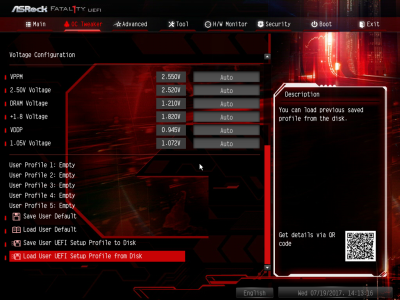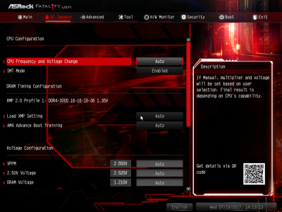 Я уже огласил лейтмотив этого сравнительного тестирования. Хочется не только познакомиться с новым железом, но и определить его оверклокерские возможности. Да, на «бумаге» платы на чипсете B350 способны разогнать центральный процессор и оперативную память, но как будет на практике? Вот ASRock Fatal1ty AB350 Gaming K4 в сравнении с X370 Taichi получила более урезанную версию BIOS. Например, пользователь может изменить всего семь типов напряжения. К счастью, основные параметры процессора и ОЗУ поддаются настройке.