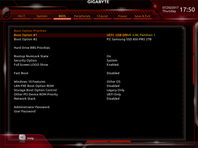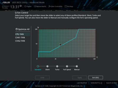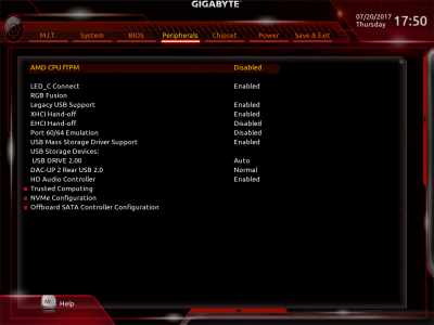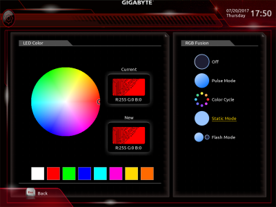 Смотреть все изображения (17) BIOS материнской платы имеет как свои плюсы, так и минусы. В плане эргономики ничего нового в прошивке не появилось. Как всегда, у новых плат GIGABYTE присутствует очень удобная функция Smart Fan 5. С ее помощью можно настроить работу любого подключенного к материнке вентилятора. При этом плата оснащена сразу пятью термодатчиками: System 1, PCI Express x16, Chipset, VRM MOS и VRM SOC. С учетом наличия пяти коннекторов для подключения вентиляторов получается, что GIGABYTE GA-AB350-GAMING 3 среди всех четырех протестированных устройств позволит наиболее точно настроить работу системы охлаждения ПК. Это касается не только процессорного кулера, но и корпусных вентиляторов. Из новых функций отмечу наличие меню RGB Fusion, при помощи которого настраивается работа подсветки.