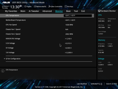 В случае с ASUS PRIME B350-PLUS мы можем следить за температурами центрального процессора и за нагревом подсистемы питания материнской платы.