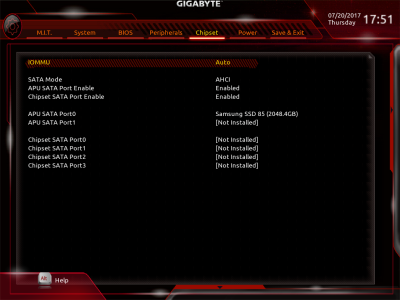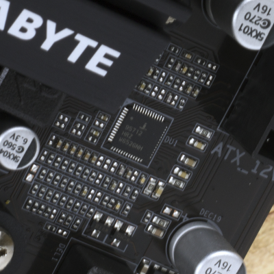 Смотреть все изображения (6) А вот сетевой контроллер (Realtek RTL8111GR) в GIGABYTE GA-AB350-GAMING 3 используется достаточно стандартный для устройств подобного класса. Подсистема питания GIGABYTE GA-AB350-GAMING 3 базируется на том же 7-фазном ШИМ-контроллере, который применяется в материнской плате ASRock Fatal1ty AB350 Gaming K4, — Intersil ISL95712. При этом четыре канала регулируют процессорное напряжение, а еще три отвечают за CPU NB/SoC Voltage. В состав каждой фазы входит катушка индуктивности и полевые транзисторы NTMFS4C10N и NTMFS4C06N от ON Semiconductor. Эти же элементы применяются, например, в плате GIGABYTE GA-Z270-Gaming K3. Без разгона небольшой алюминиевый радиатор хорошо справляется со своей задачей. Как видите, системой охлаждения снабжены только элементы конвертера, отвечающие за напряжение ядер CPU. GIGABYTE UEFI BIOS
