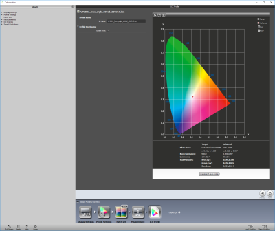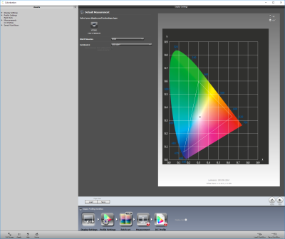 Для аппаратной калибровки мы использовали программу Viewsonic Colorbration последней версии, созданную на базе решения X-Rite и полностью повторяющую как его дизайн, так и возможности. Был установлен продвинутый режим калибровки, измерительным устройством выступал колориметр Display Pro последней версии и с последней прошивкой. Точность его работы вкупе с используемой в ПО матрицей коррекции в дальнейшем была подтверждена референсным спектрофотометром.