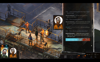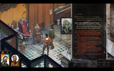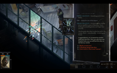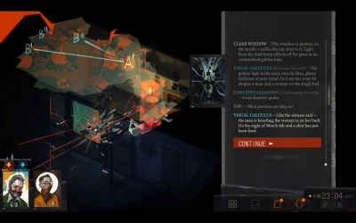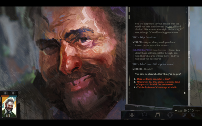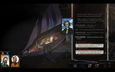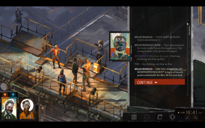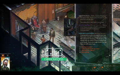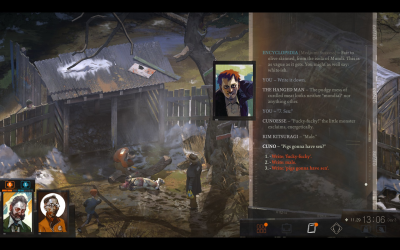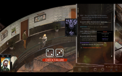 Сознание медленно ко мне возвращалось, но зачем? Сквозь гул пустоты я слышу какие-то голоса — они здесь, рядом? Может, за стеной? А может, в моей голове? Кажется, со мной говорит лимбическая система — ее слова горьки и полны отчаяния. Но болит не только тело, но и душа. Только у меня нет возможности осознать, отчего именно. Тяжесть прошлого провалилась куда-то вместе с памятью, и я лишь смутно ощущаю какую-то непоправимую потерю и несделанные дела. Покачивающийся на дереве за окном труп словно напоминает мне о них. Кажется, надо все-таки встать и повернуть лицо навстречу времени, печали, жестокости своего существования и грядущей смерти. А также навстречу звенящему диско. Мой след взяла Мнемозина. ⇡#Костры амбицийВ какой-то момент расследование убийства (если быть совсем точным, болтовня со всеми встречными и любопытство) заведет вас в полузаброшенное офисное здание, которого коснулось проклятие, уничтожающее любой бизнес в его стенах. Спойлер: это проклятие — капитализм. Но об этом мы узнаем позже, а пока остается бродить среди останков чьих-то идей. И среди компаний по производству мороженого или создателей особенных лыж встретится и комнатка с опаутиненными углами, в которой все указывает на то, что кто-то чрезмерно амбициозный пытался создать грандиозную ролевую игру, но потерпел оглушительный провал. Студия Fortress Accident разорилась и забросила пустые попытки на ровном месте сделать шедевр. Это могло и должно было стать отражением действительности. Ничего удивительного — куда там мелкой студии, когда даже Bioware терпит одну неудачу за другой. Век эпических RPG уже давно отшумел, да и кто вообще рискнет замахнуться на что-то, смешивающее Planescape: Torment и Kentucky Route Zero. Это уже слишком — такая игра никогда бы в любом случае не вышла. А если бы и вышла, то страшно представить, насколько сильно были бы разочарованы придирчивые любители глубоких сюжетных ролевых игр, которые получили нечто не соответствующее идеалам. Впрочем, если вам угодно, попробуйте, у вас есть два кубика и один бросок. (Стук игральных костей по столу.) ДВЕ ШЕСТЕРКИ. За время с момента анонса в начале 2016 года сменить название успела не только игра, которая на старте именовалась No Truce With The Furies, но и сама эстонская студия, носившая имя Fortress Occident (бинго!), — и, казалось, ее дебютное творение, которое выросло из настольных сессий в модифицированную Dungeons & Dragons, просто не имеет шансов выйти. Слишком велик был замах, и слишком много было случаев, когда завышенные амбиции приводили к глубочайшему провалу. Но игра вышла, причем не слишком сильно задержавшись, — и превзошла любые ожидания. Disco Elysium изначально создавалась как настольная игра — и следы этого подхода есть повсюду. Ролевая система очень проста, но при этом изящна: 24 параметра разделены по 4 группам-способностям, которые вы определяете в самом начале, создавая персонаж, дальше они не меняются; получаемые за набираемый опыт очки вы вкладываете уже непосредственно в параметры, на которые могут также влиять всевозможные предметы, события и мысли. Помимо кабинета параметров у вас есть кабинет мыслей — появляющиеся у вас в голове или приносимые кем-то со стороны идеи можно интериоризировать (обдумать) или забыть; очки можно потратить на приобретение новых слотов или как раз на выкидывание уже ненужных идей из головы. Обдумывание — б