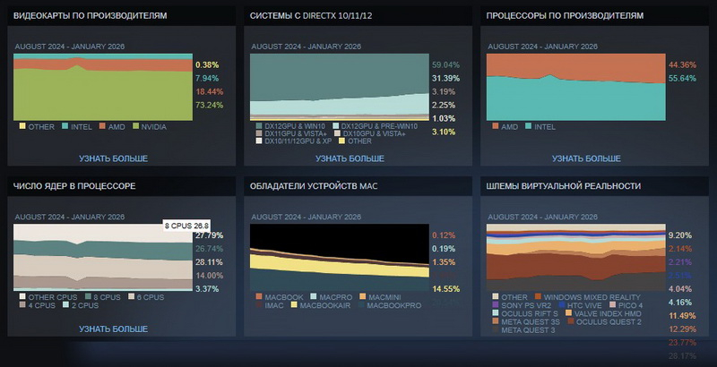 Windows 10 и процессоры Intel неожиданно прибавили популярности у геймеров — статистика Steam за январь