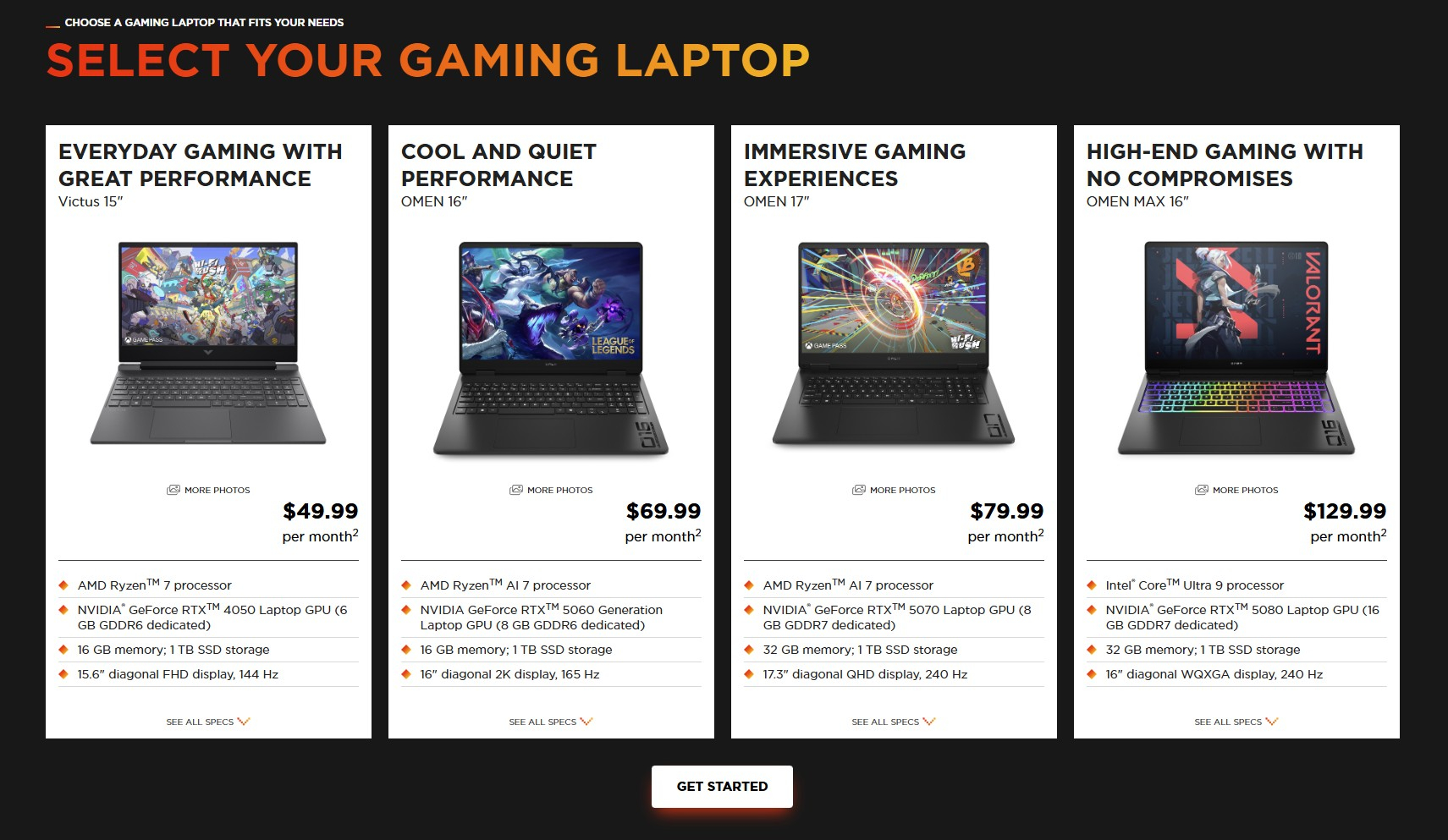 Компания HP уже почти полгода без лишнего шума развивает сервис аренды игровых ноутбуков, а также аксессуаров к ним. За $50–130 в месяц пользователь может получить доступ к производительной игровой системе. Однако программа не подразумевает выкупа устройства даже при долгосрочной аренде.