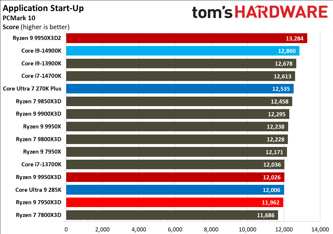 Завтра стартуют продажи флагманского процессора Ryzen 9 9950X3D2 Dual Edition с двойным 3D V-Cache. Компания AMD оценила новинку в $900 и позиционирует чип не для игр, а скорее, как решение для создания контента. Портал Tom’s Hardware протестировал чип. Согласно результатам, по игровой производительности Ryzen 9 9950X3D2 сравнялся с чисто игровым Ryzen 9800X3D. А вот производительность в рабочих задачах в среднем выросла всего на 4 % по сравнению с Ryzen 9 9950X3D.