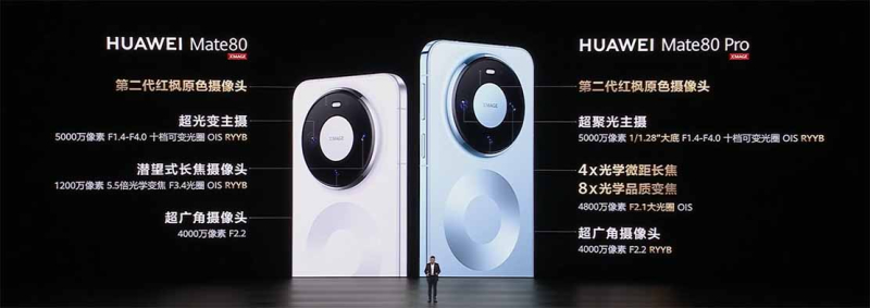 В свою очередь, смартфон Mate 80 Pro оснащён 50-Мп основной камерой с сенсором размером 1/1,28 дюйма (f/1,4–4,0, OIS), 40-Мп широкоугольной камерой с диафрагмой f/2,2 и 48-Мп телеобъективом с двумя перископами с 4- и 8-кратным зумом.